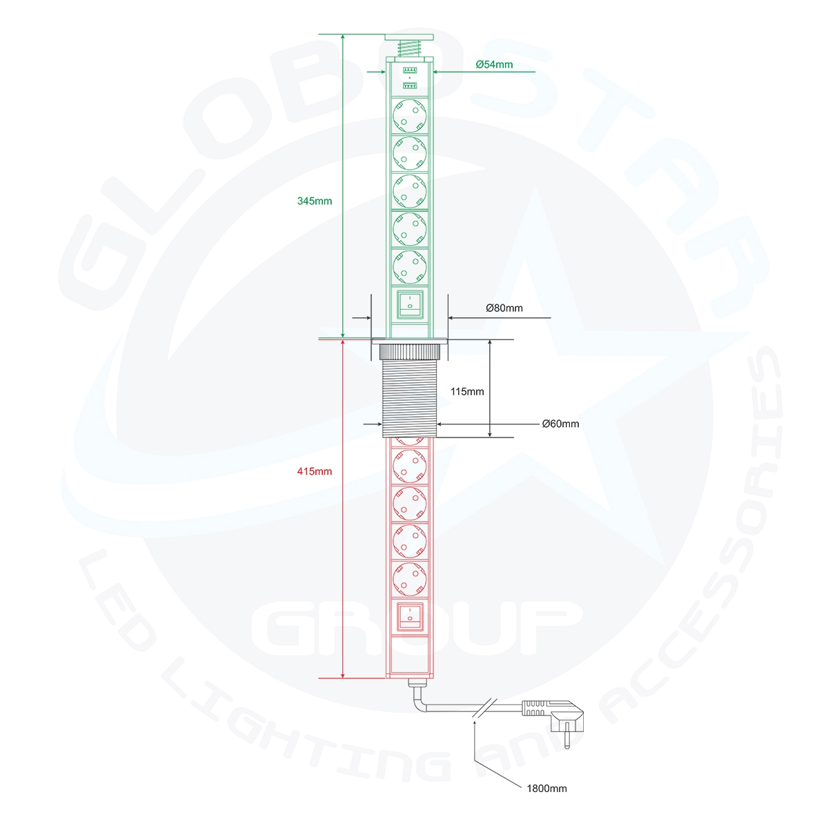 - Ύψος πάνω απο τη Βάση: 345mm (Τοποθετημένο)