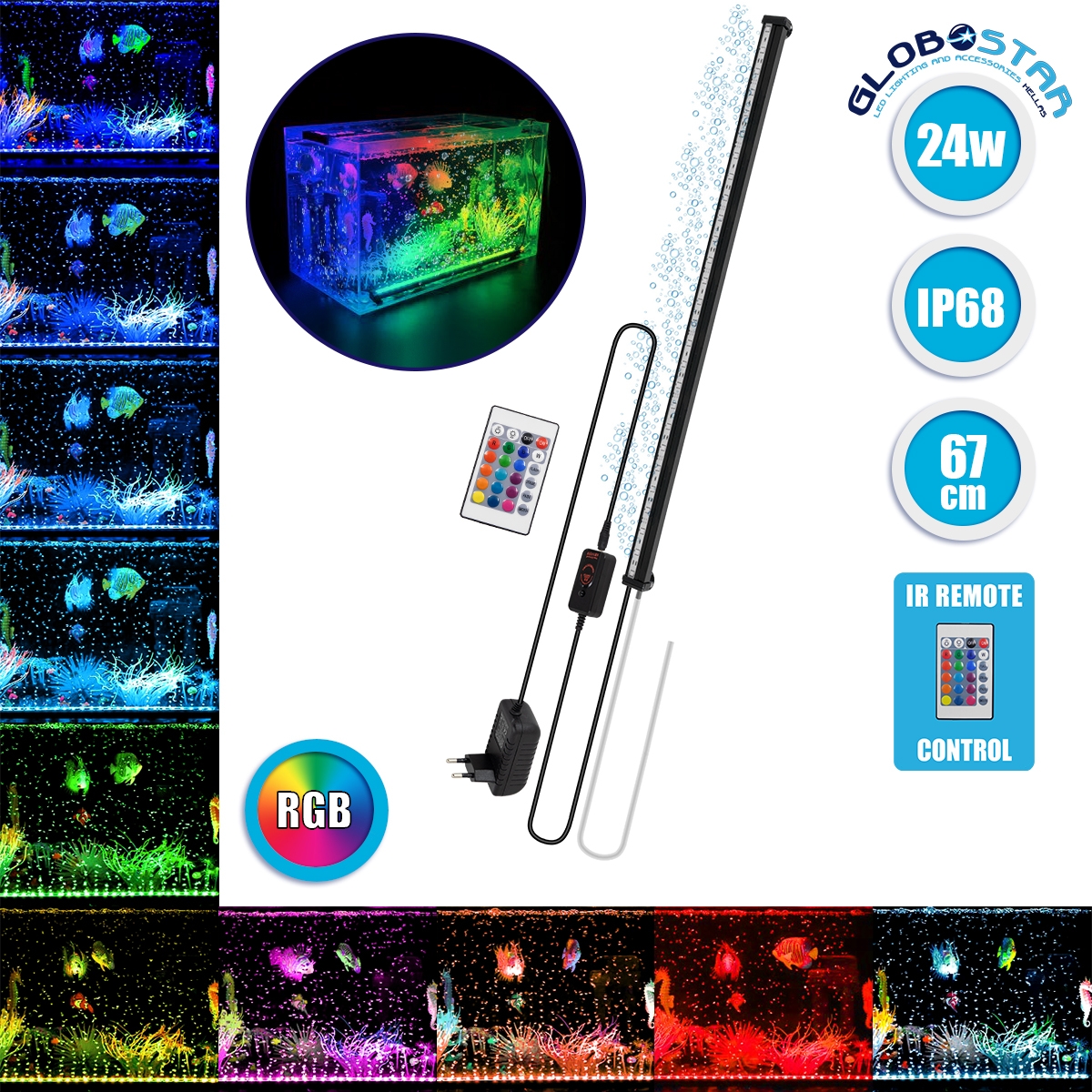 Το GloboStar® 79677 Φωτιστικό Ενυδρείου & Οξυγονωτής / Μηχανισμός Φυσαλίδων 67cm LED 24W 180° AC 230V Αδιάβροχο IP68 με Ασύρματο Χειριστήριο IR Πολύχρωμο RGB περιέχει 3 βεντούζες για την εύκολη τοποθέτηση του.