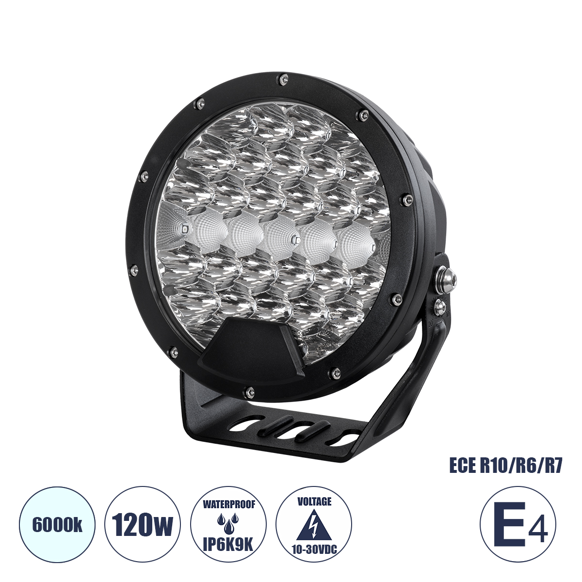 GloboStar® 85338 E4 Mark Vehicle & JEEP Work Lights – Φώτα Εργασίας για Οχήματα και JEEP LED High Power 120W DC 10-30V Αδιάβροχo IP6K9K Ψυχρό Λευκό 6000K M18 x Π7 x Υ19cm