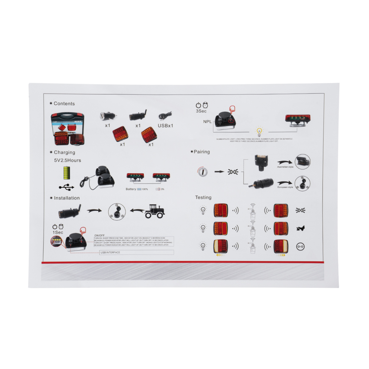 GloboStar® 85339 Ζευγάρι Ασύρματα Επαναφορτιζόμενα Φανάρια για Τρέιλερ LED 150W με Μαγνήτη & Επαναφορτιζόμενη Μπαταρία 2000mAh – Ασύρματος Πομπός & Δέκτης RF 2.4Ghz – Κόκκινο – Πορτοκαλί – Λευκό – Αδιάβροχα IP65 – Μ11 x Π11 x Υ5cm – 1 Χρόνο Εγγύηση