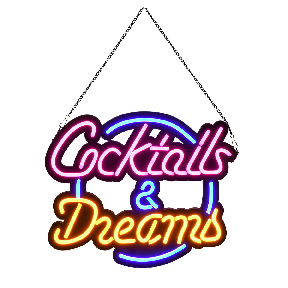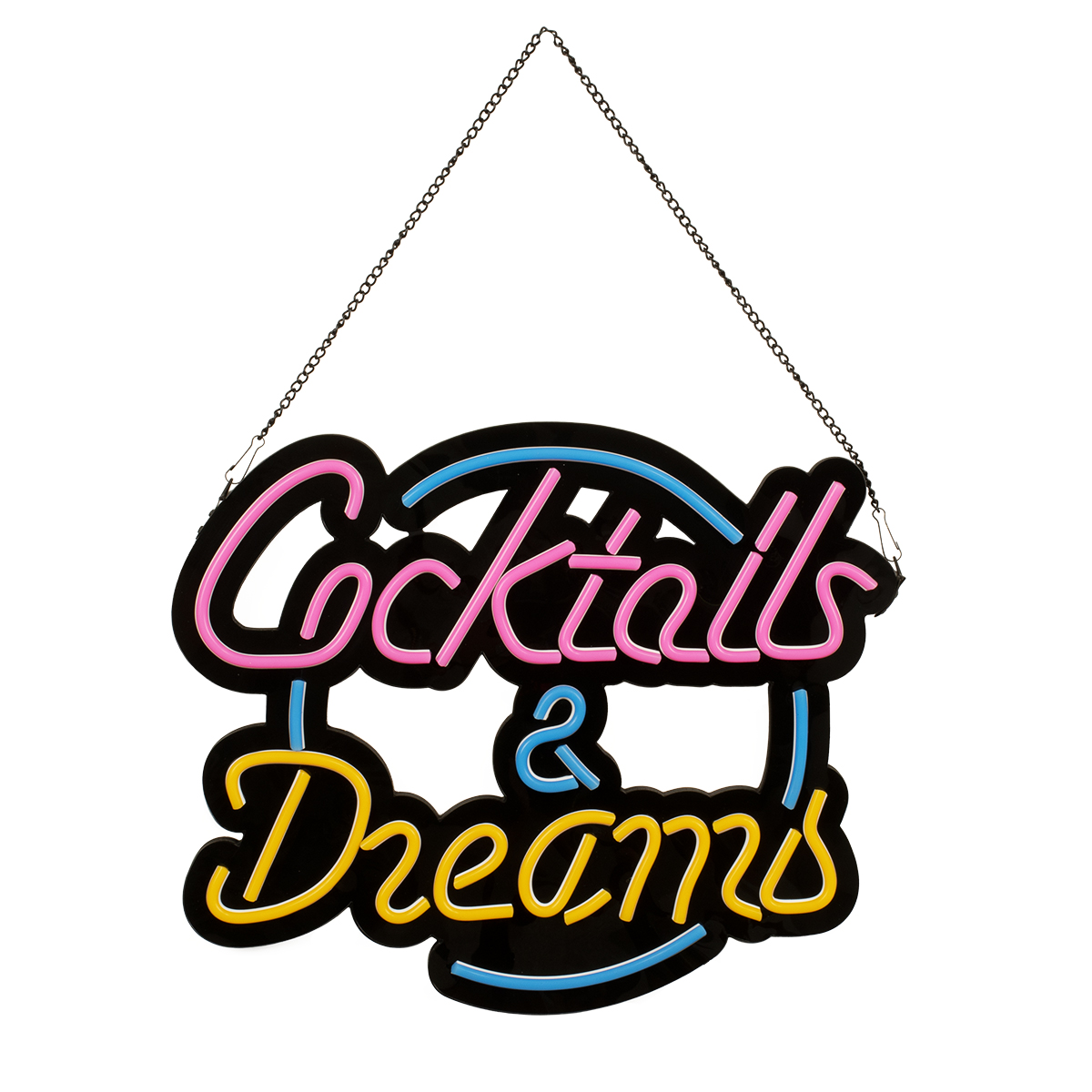GloboStar® 85850 Φωτιστικό Ταμπέλα Φωτεινή Επιγραφή NEON LED Σήμανσης COCKTAILS & DREAMS 30W AC 230V με Διακόπτη On/Off Ροζ – Γαλάζιο – Κίτρινο