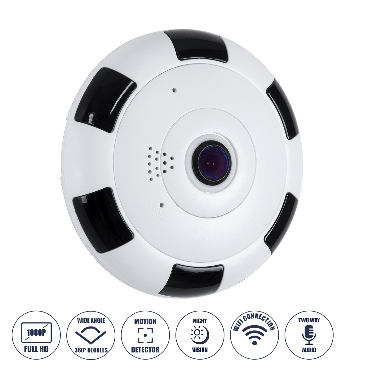 GloboStar® 86027 Επιτοίχια IP Camera 1080P WiFi 360° Μοιρών – Νυχτερινή Όραση με LED IR – Διπλή Κατέυθυνση Ομιλίας – Ανιχνευτή Κίνησης – Νυχτερινή Λήψη – Λευκό Μαύρο