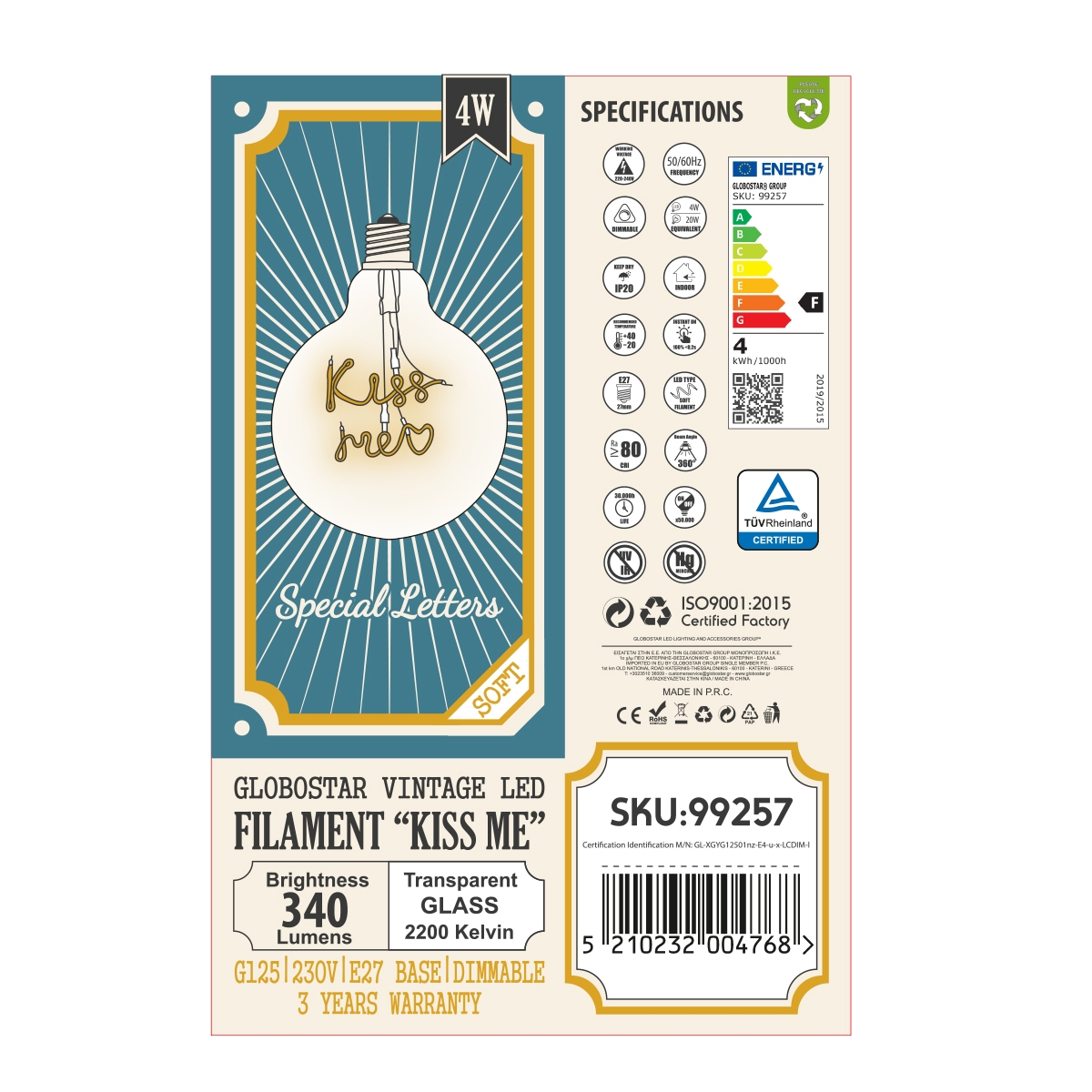Product Category – Κατηγορία/Τύπος Προϊόντος : LED Light Bulb E27 G125 Globe – Λάμπα LED E27 G125 Γλόμπος