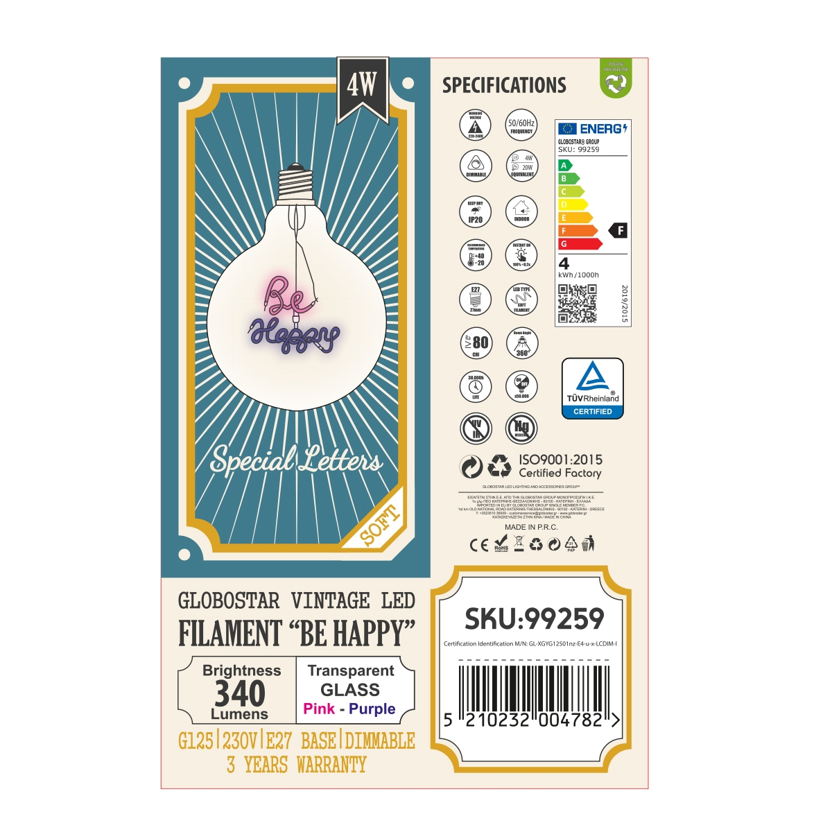 Product Category – Κατηγορία/Τύπος Προϊόντος : LED Light Bulb E27 G125 Globe – Λάμπα LED E27 G125 Γλόμπος
