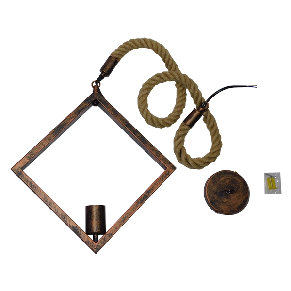 - Χρώμα Φωτιστικού: Καφέ – Σκουριά με Μπεζ Σχοινί