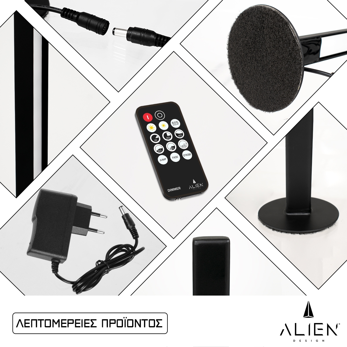 GloboStar® ALIEN-DIVA-BLACK-50-5 ALIEN Design DIVA Μοντέρνο Minimal Nordic Μεταλλικό Φωτιστικό Επιτραπέζιο – Πορτατίφ – Λαμπατέρ Μαύρο LED 8W 800lm με Ασύρματο Χειριστήριο RF & Dimmer IP20 Πράσινο Μ3 x Π1.6 x Υ50cm
