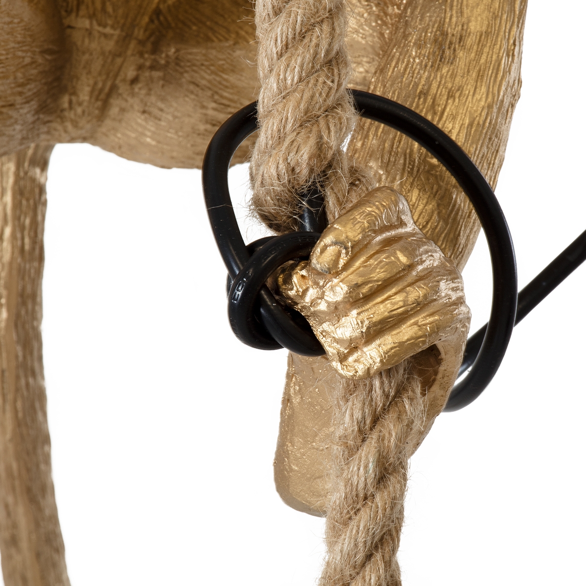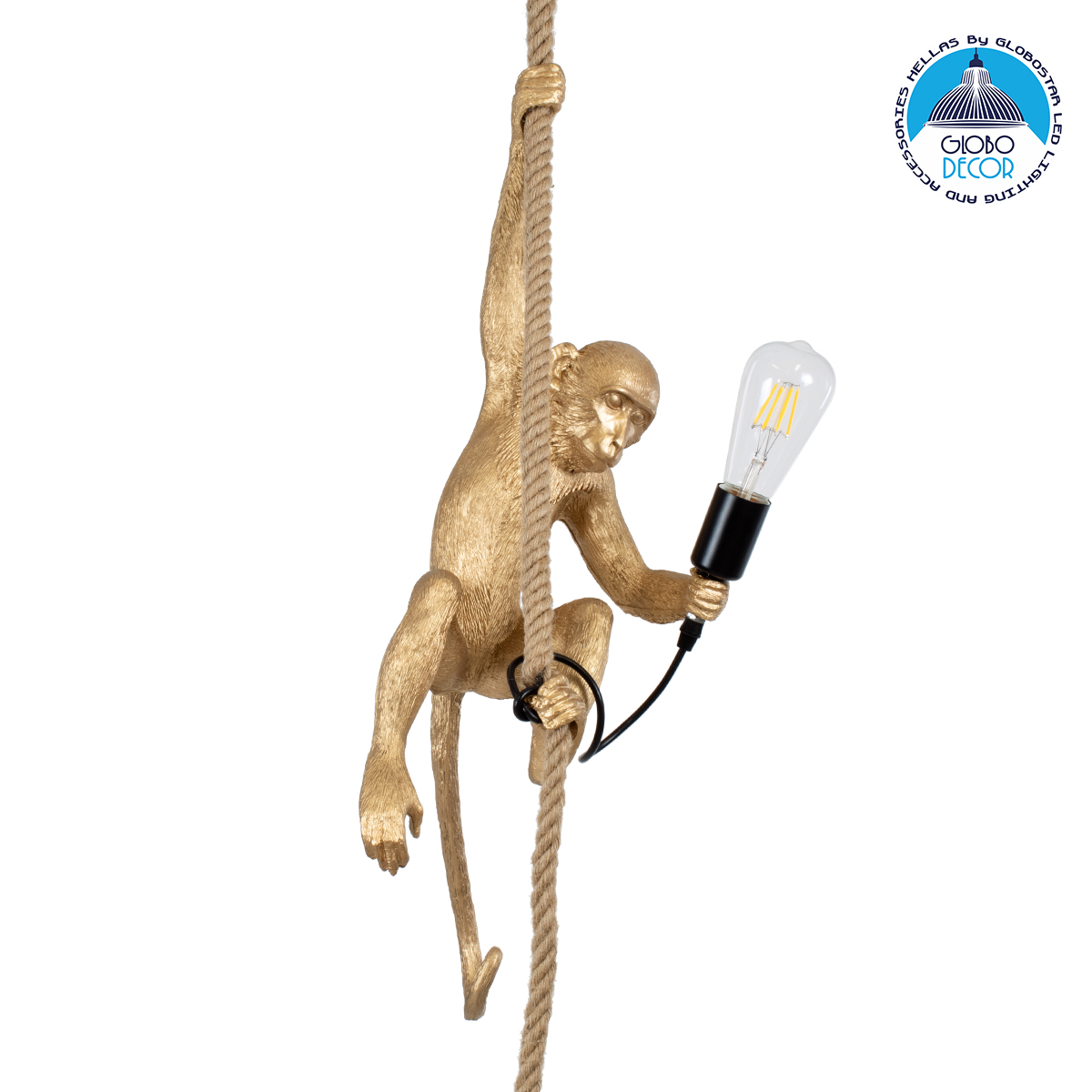 GloboStar® APES 01803 Μοντέρνο Κρεμαστό Φωτιστικό Οροφής Μονόφωτο 1 x E27 Χρυσό με Μπεζ Σχοινί Φιγούρα Μ26 x Π28 x Υ69cm