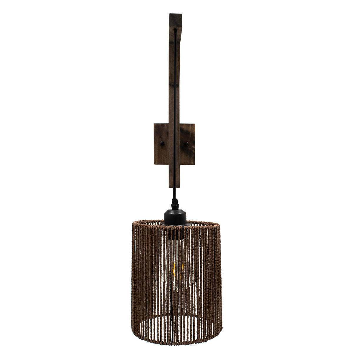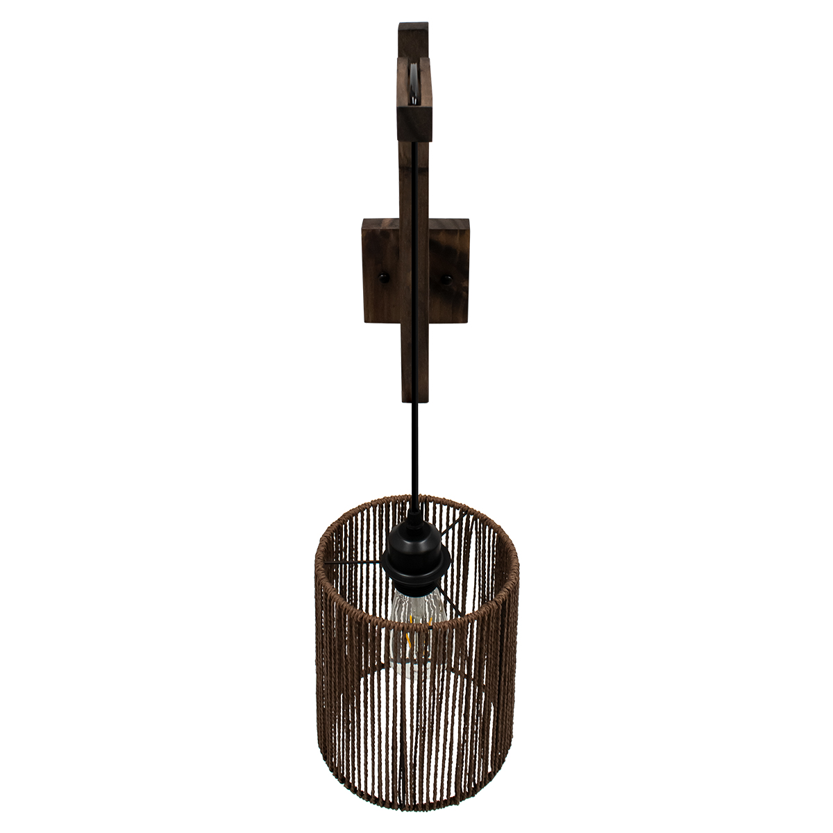 GloboStar® ARTI 00887 Vintage Φωτιστικό Τοίχου Απλίκα Μονόφωτο Καφέ Σκούρο Ξύλινο με Σχοινί και Καπέλο Φ18 x Μ18 x Π30 x Υ35-75cm