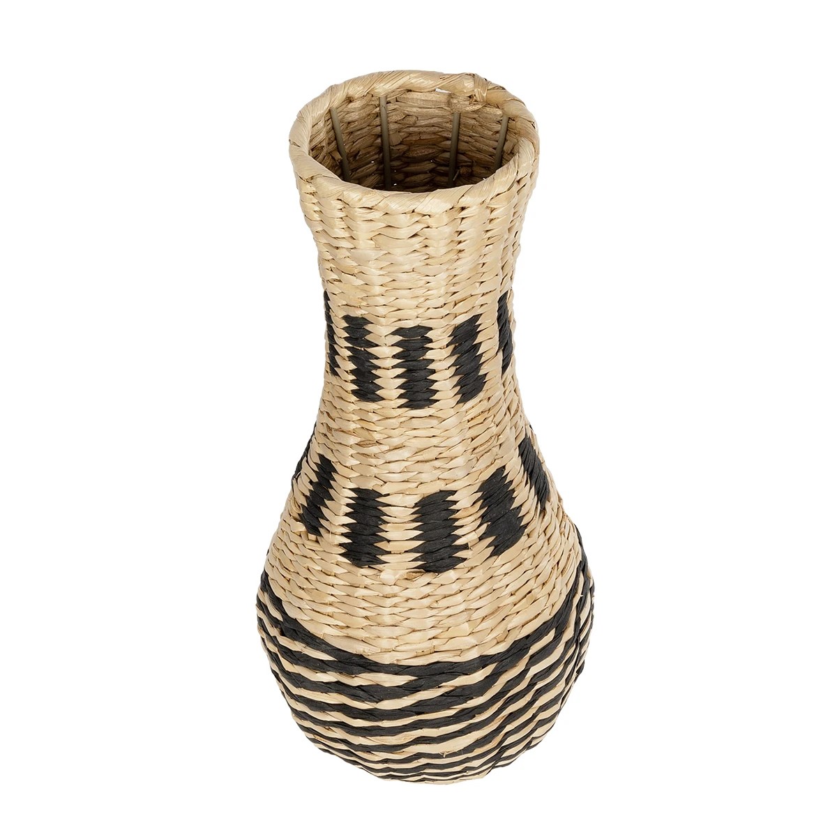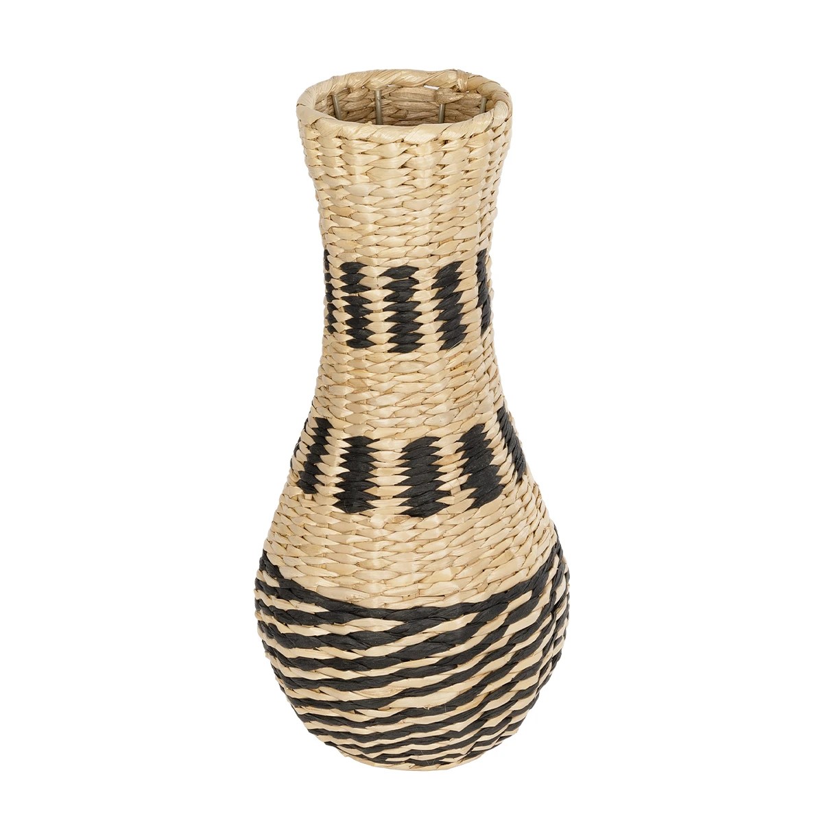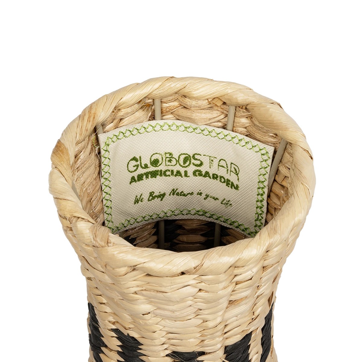 GloboStar® Artificial Garden BOLOGNA 21228 Διακοσμητικό Πλεκτό Καλάθι – Κασπώ Γλάστρα – Flower Pot Μπεζ με Μαύρο Π20 x M20 x Υ42cm