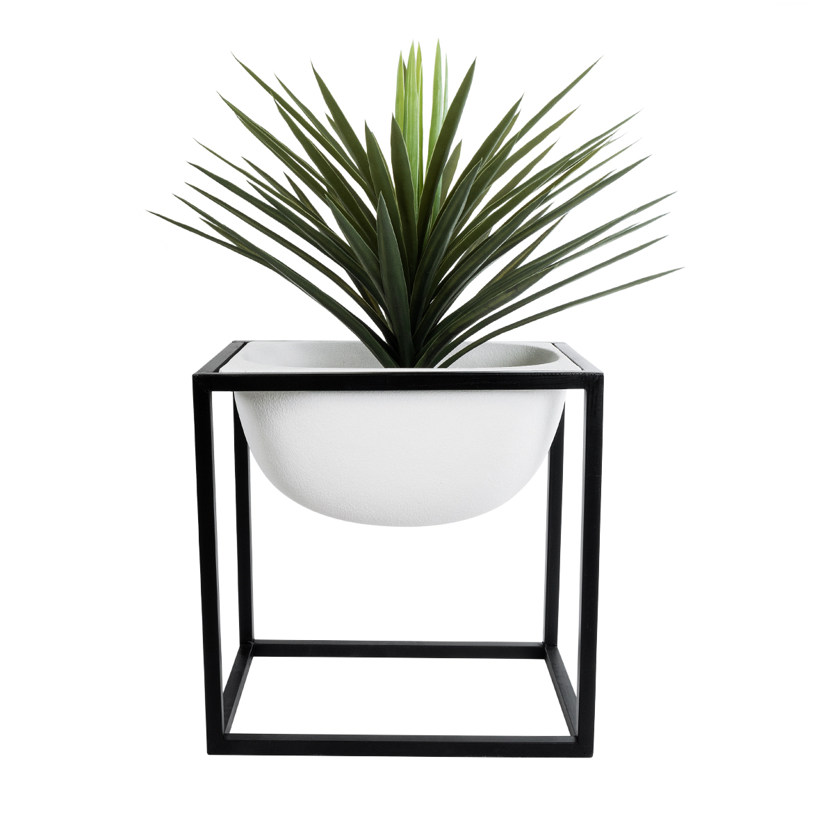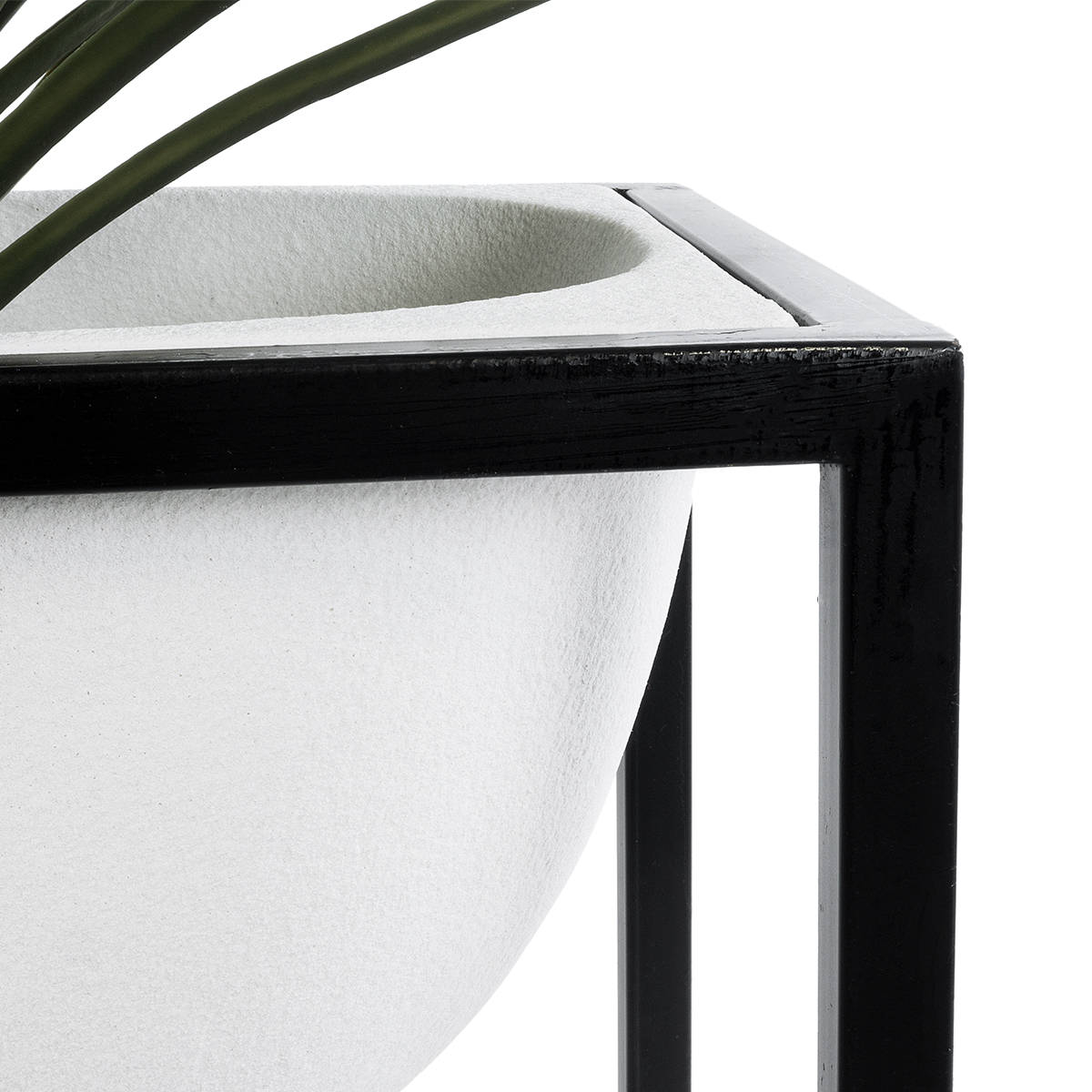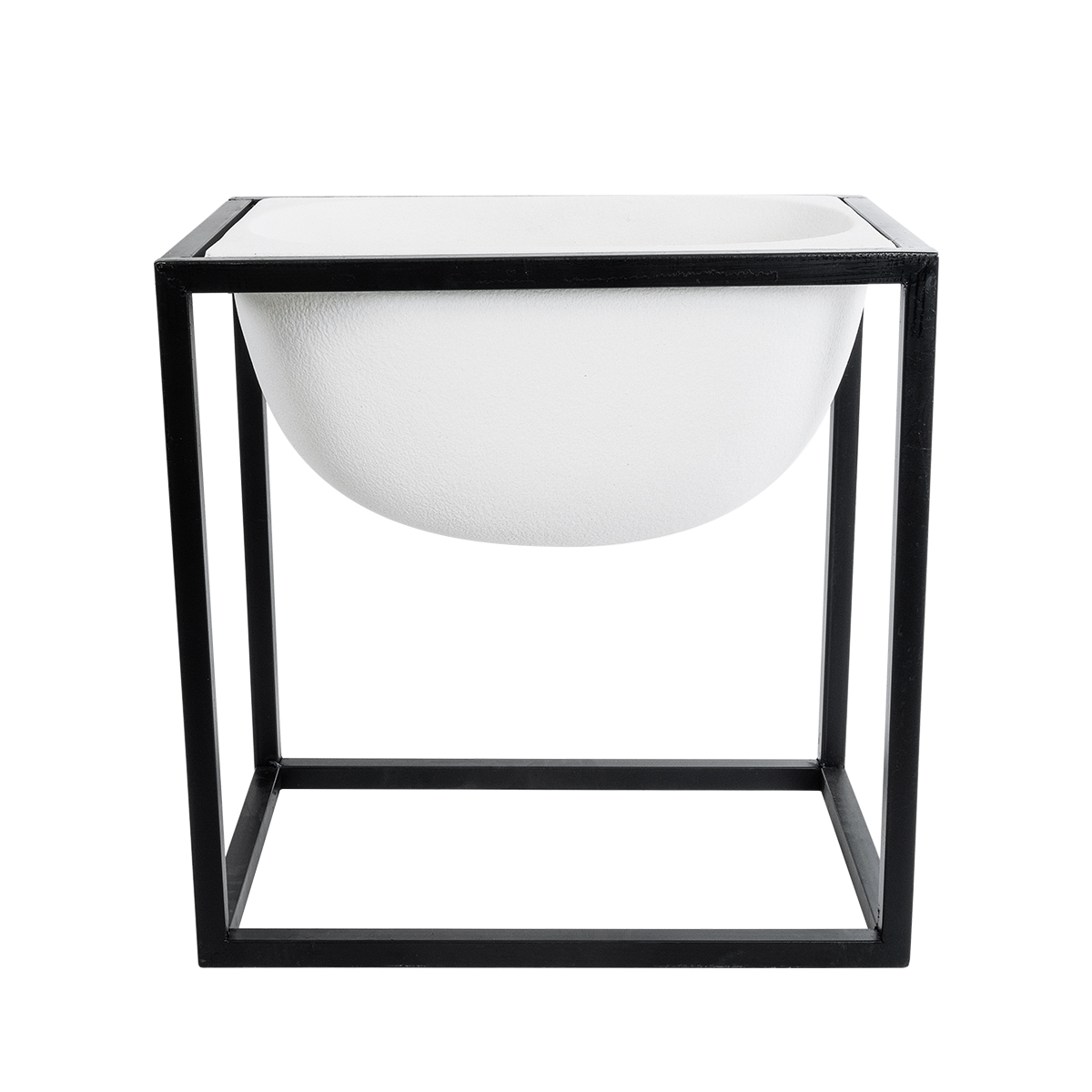 GloboStar® Artificial Garden FIORI 20754 Επιδαπέδιο Μεταλλικό Τσιμεντένιο Κασπώ Γλάστρα – Flower Pot Λευκό με Μαύρο Μ60 x Π40 x Υ60cm