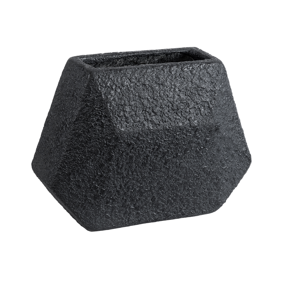 GloboStar® Artificial Garden GREENWICH 20787 Επιδαπέδιο Πολυεστερικό Τσιμεντένιο Κασπώ Γλάστρα – Flower Pot Μαύρο Μ24 x Π14 x Υ20cm