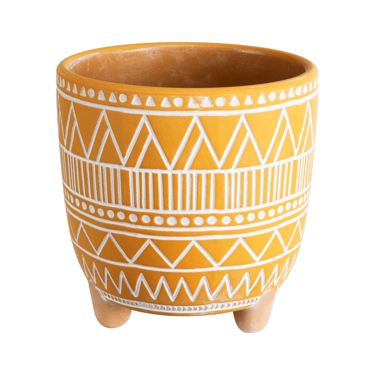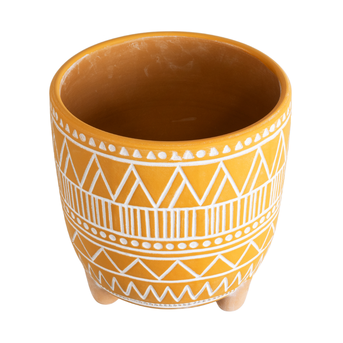 GloboStar® Artificial Garden JAIPUR 20506 Διακοσμητικό Κεραμικό Κασπώ Γλάστρα – Flower Pot Πορτοκαλί με Λευκό Φ16 x Υ16cm