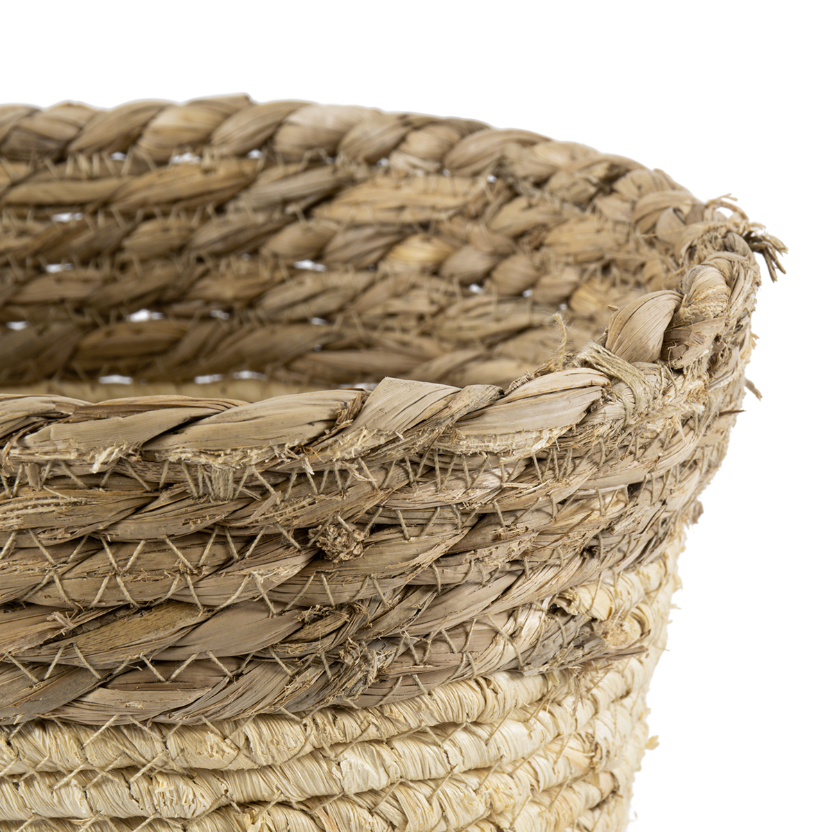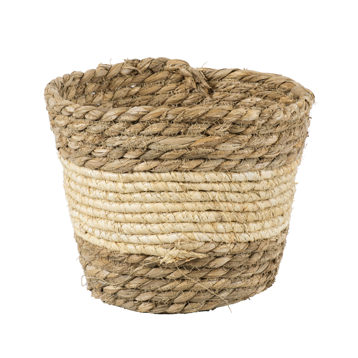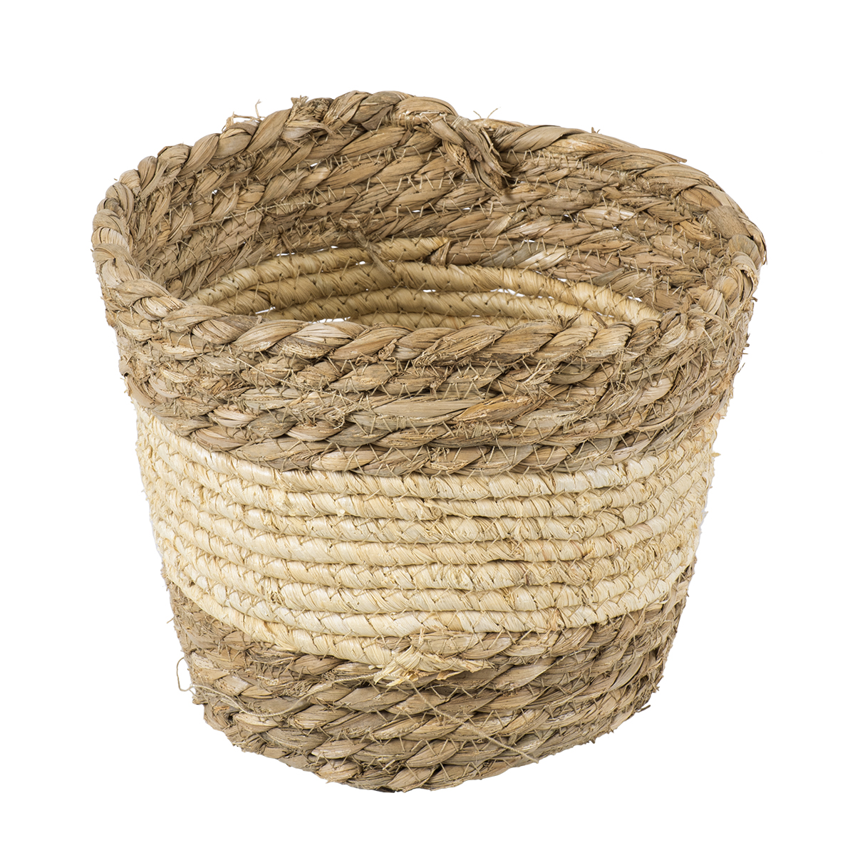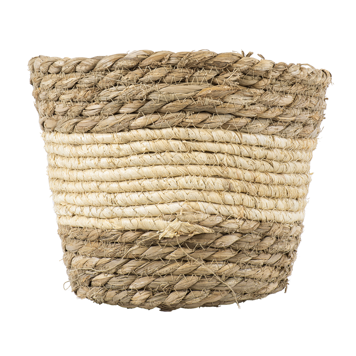 GloboStar® Artificial Garden KYTHIRA 20272 Διακοσμητικό Πλεκτό Καλάθι – Κασπώ Γλάστρα – Flower Pot Μπεζ με Λευκό Φ18cm x Υ15cm