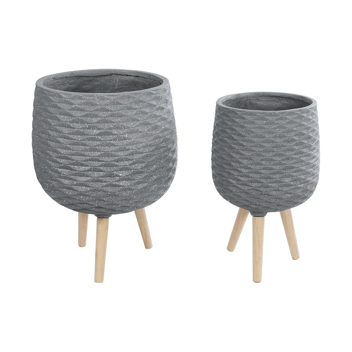 GloboStar® Artificial Garden LOUISIANA 20567 ΣΕΤ 2 Διακοσμητικά Πολυεστερικά Τσιμεντένιά Κασπώ Γλάστρες – Flower Pots Γκρι A:Φ36 x Υ54cm B:Φ32 x Υ49cm