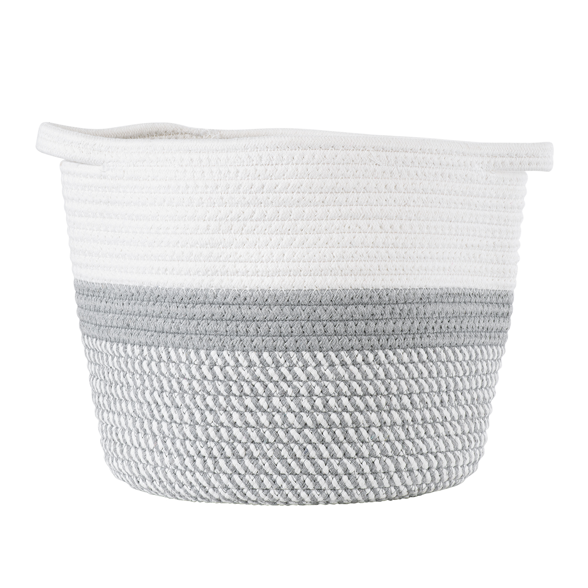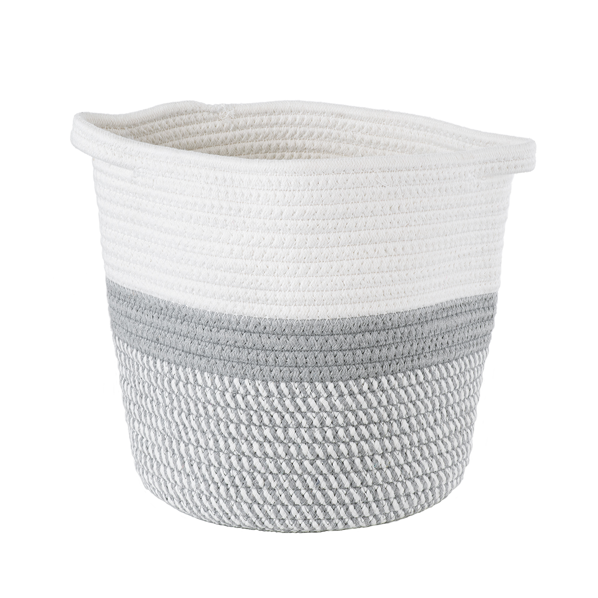 GloboStar® Artificial Garden POSITANO 20319 Διακοσμητικό Πλεκτό Καλάθι – Κασπώ Γλάστρα – Flower Pot Γκρι με Λευκό Φ25cm x Υ25cm
