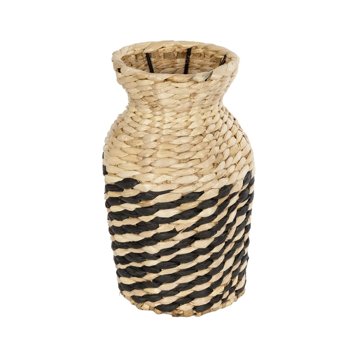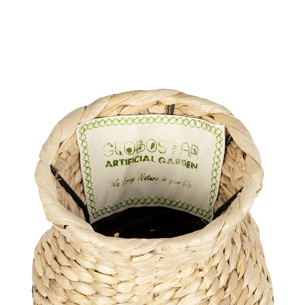 GloboStar® Artificial Garden VERSALLES 21226 Διακοσμητικό Πλεκτό Καλάθι – Κασπώ Γλάστρα – Flower Pot Μπεζ με Μαύρο Π16 x M16 x Υ25cm