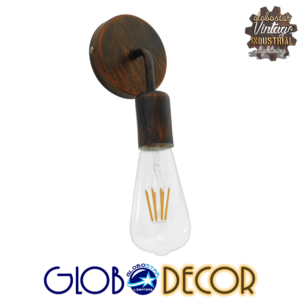 GloboStar® ASPID 01398 Vintage Φωτιστικό Τοίχου Απλίκα Μονόφωτο Καφέ Σκουριά Μεταλλικό Μ10 x Π7 x Υ16cm