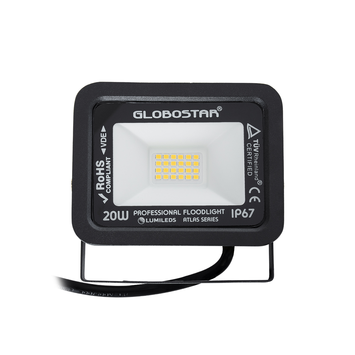 GloboStar® ATLAS 61412 Επαγγελματικός Προβολέας LED 20W 2300lm 120° AC 220-240V – Αδιάβροχος IP67 – Μ12 x Π2.5 x Υ9.5cm – Μαύρο – Θερμό Λευκό 2700K – LUMILEDS Chips – TÜV Rheinland Certified – 5 Years Warranty