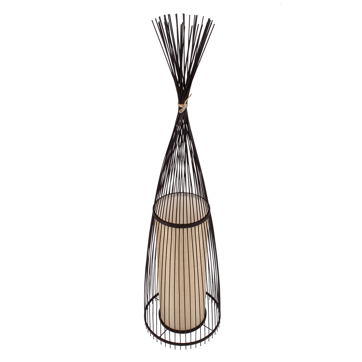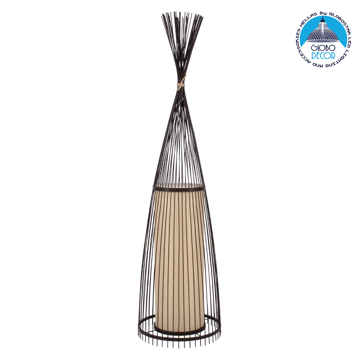 GloboStar® AZORES 01756 Μοντέρνο Φωτιστικό Δαπέδου Μονόφωτο 1 x E27 Καφέ Μπαμπού Πλέγμα D40 x H150cm