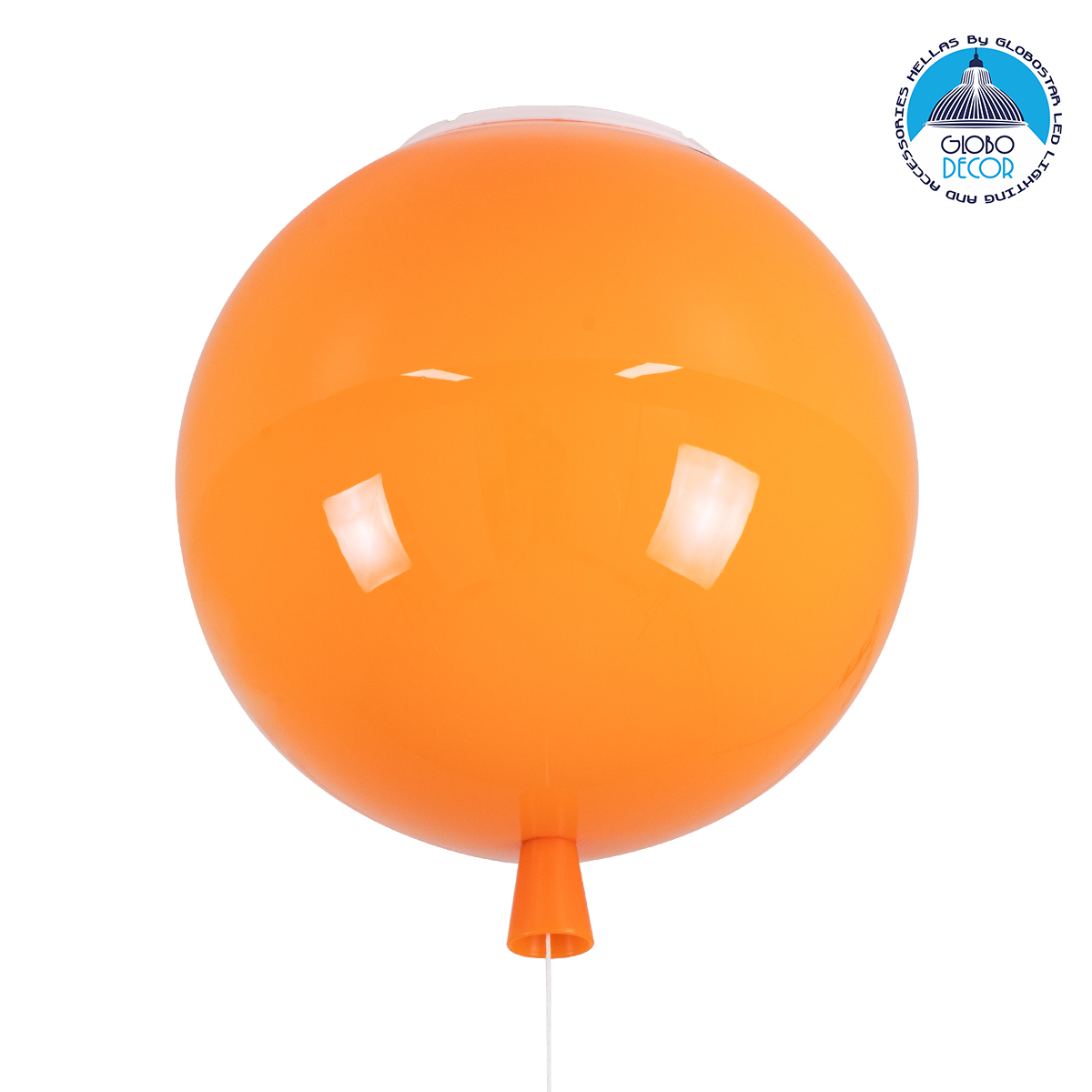GloboStar® BALLOON 00650 Μοντέρνο Παιδικό Φωτιστικό Οροφής Μονόφωτο Πορτοκαλί Πλαστικό Μπάλα Φ30 x Υ33cm