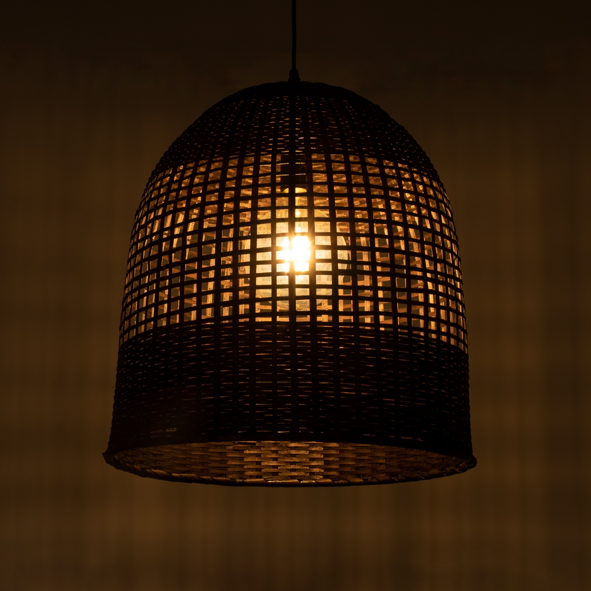 GloboStar® BORA-BORA 01736 Μοντέρνο Κρεμαστό Φωτιστικό Οροφής Μονόφωτο 1 x E27 Καφέ Μπαμπού Καμπάνα Φ42 x Υ44cm