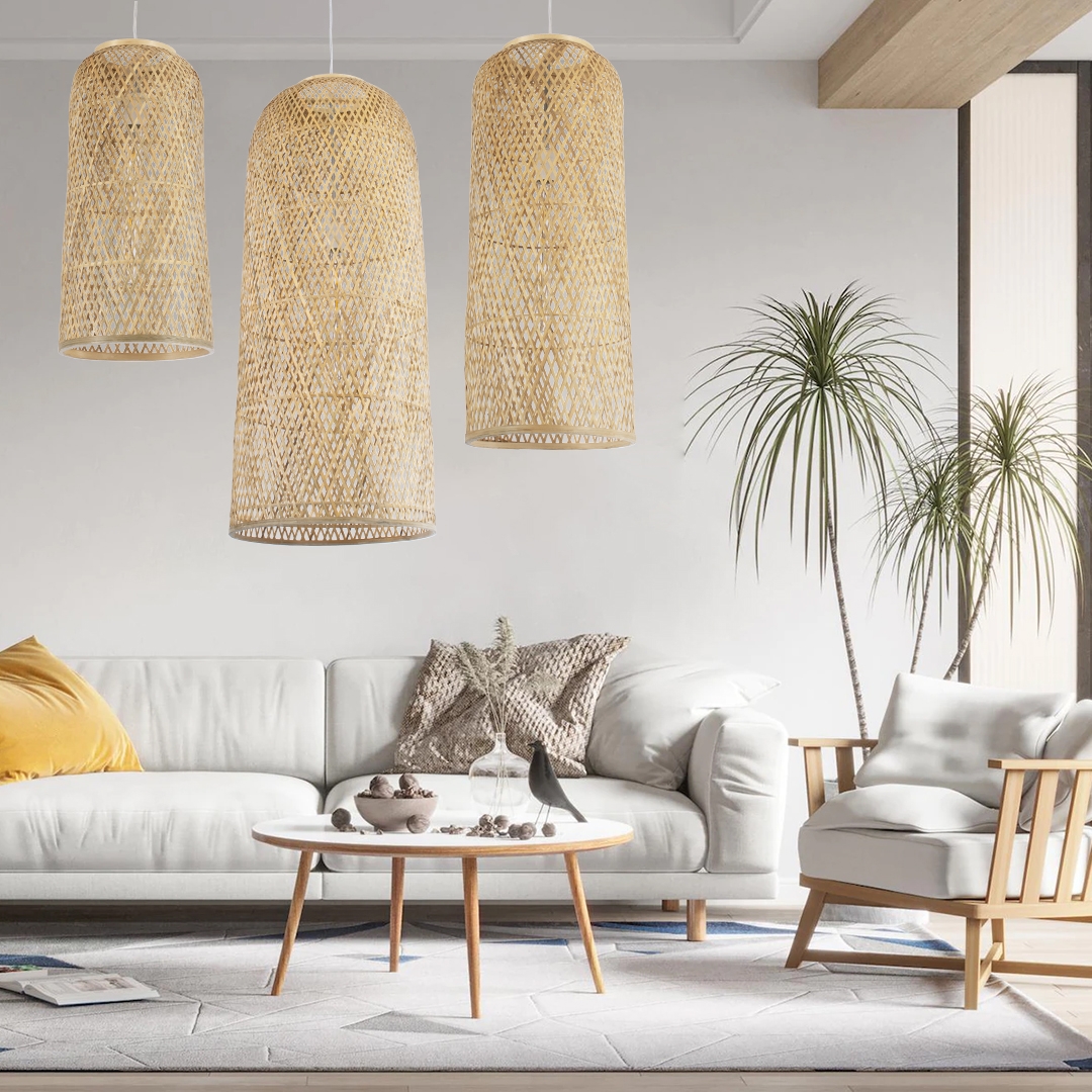 GloboStar® CALERO 01712 Μοντέρνο Κρεμαστό Φωτιστικό Οροφής Μονόφωτο 1 x E27 Μπεζ Μπαμπού Καμπάνα Φ40 x Υ90cm