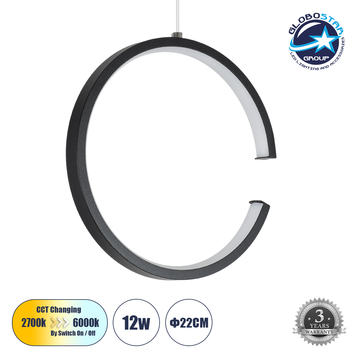 GloboStar® CEROBA 61306 Κρεμαστό Φωτιστικό Οροφής Linear Design LED CCT 12W 1320lm 360° AC 220-240V – Εναλλαγή Φωτισμού μέσω Διακόπτη On/Off All In One Ψυχρό 6000k+Φυσικό 4500k+Θερμό 2700k Φ22 x Π2cm – Μαύρο – 3 Years Warranty