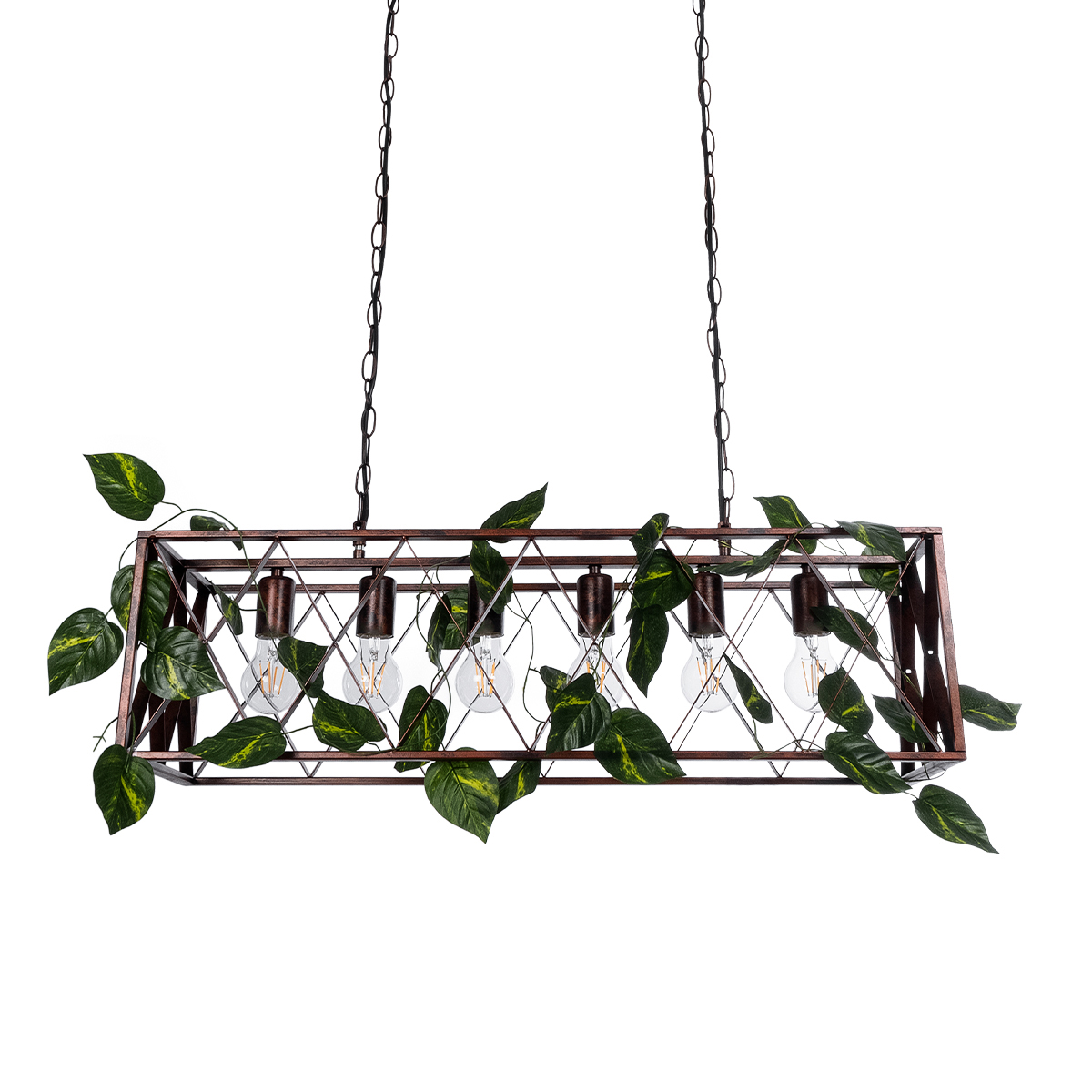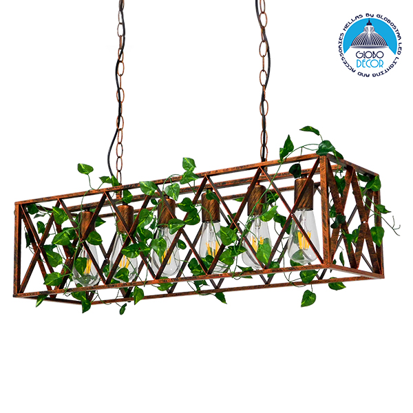 GloboStar® CLARITY 00963 Vintage Industrial Κρεμαστό Φωτιστικό Οροφής Πολύφωτο Καφέ Σκουριά Μεταλλικό Πλέγμα Μ78 x Π25 x Υ22cm