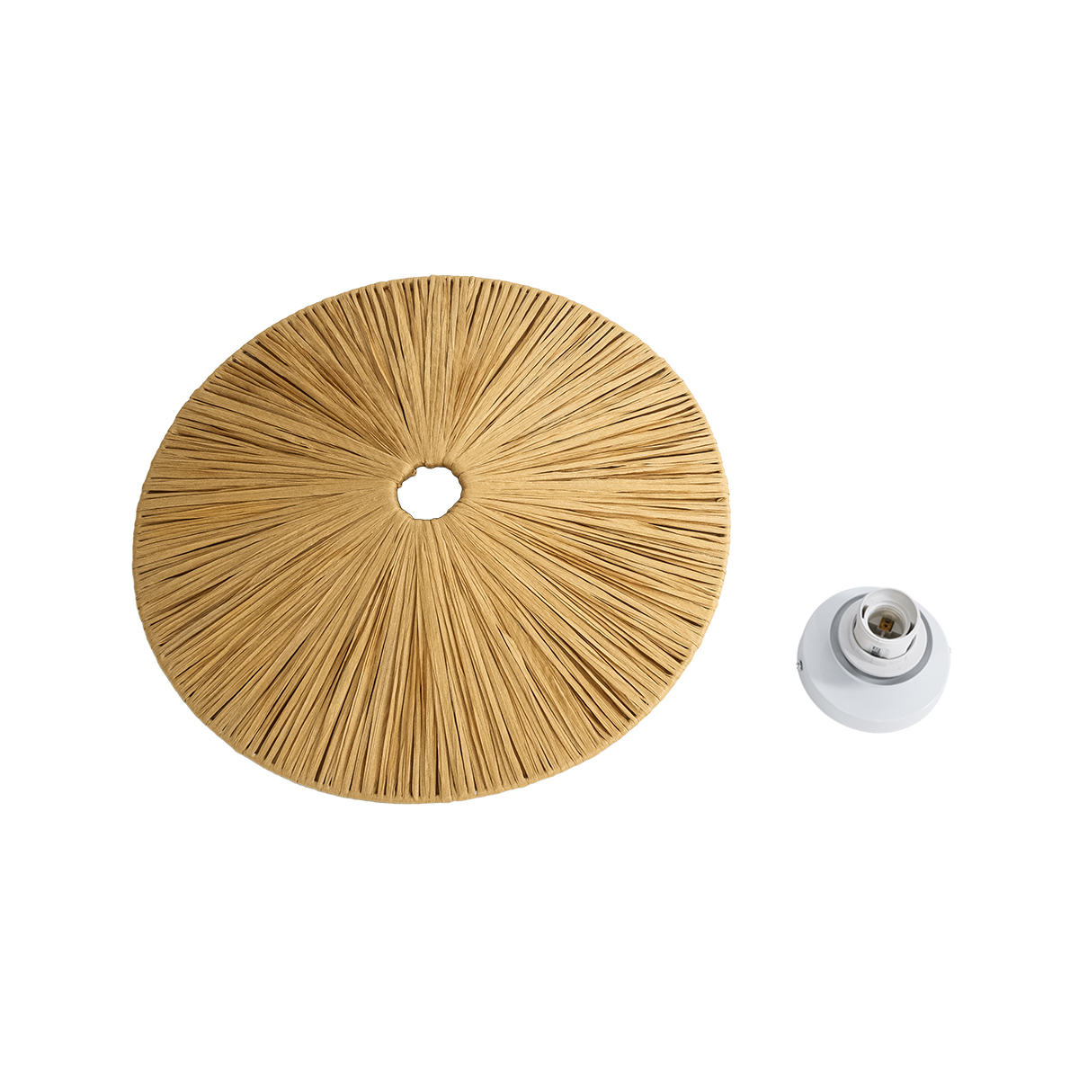 GloboStar® COLOMBO 02283 Boho Φωτιστικό Τοίχου – Απλίκα Μονόφωτο 1 x E27 AC 220-240V IP20 – Φ40 x Υ4.5cm – Μπεζ Καφέ Φυσική Ράφια Άχυρο Πλέγμα – 5 Χρόνια Εγγύηση