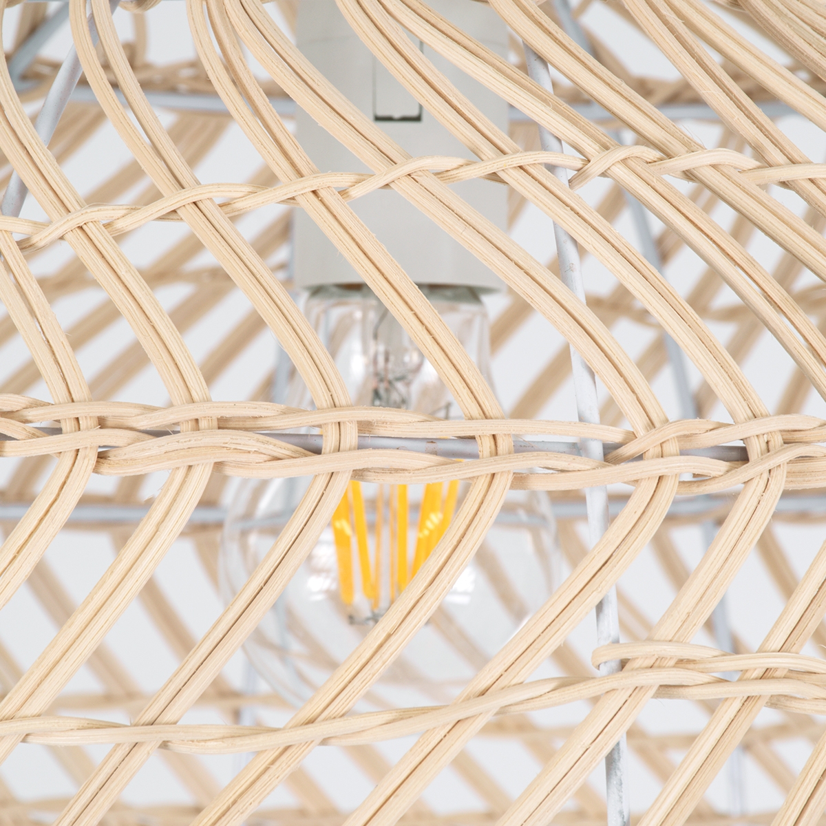 GloboStar® CUBA 01770 Μοντέρνο Κρεμαστό Φωτιστικό Οροφής Μονόφωτο 1 x E27 Καφέ Bamboo Πλέγμα Φ100 x Υ55cm