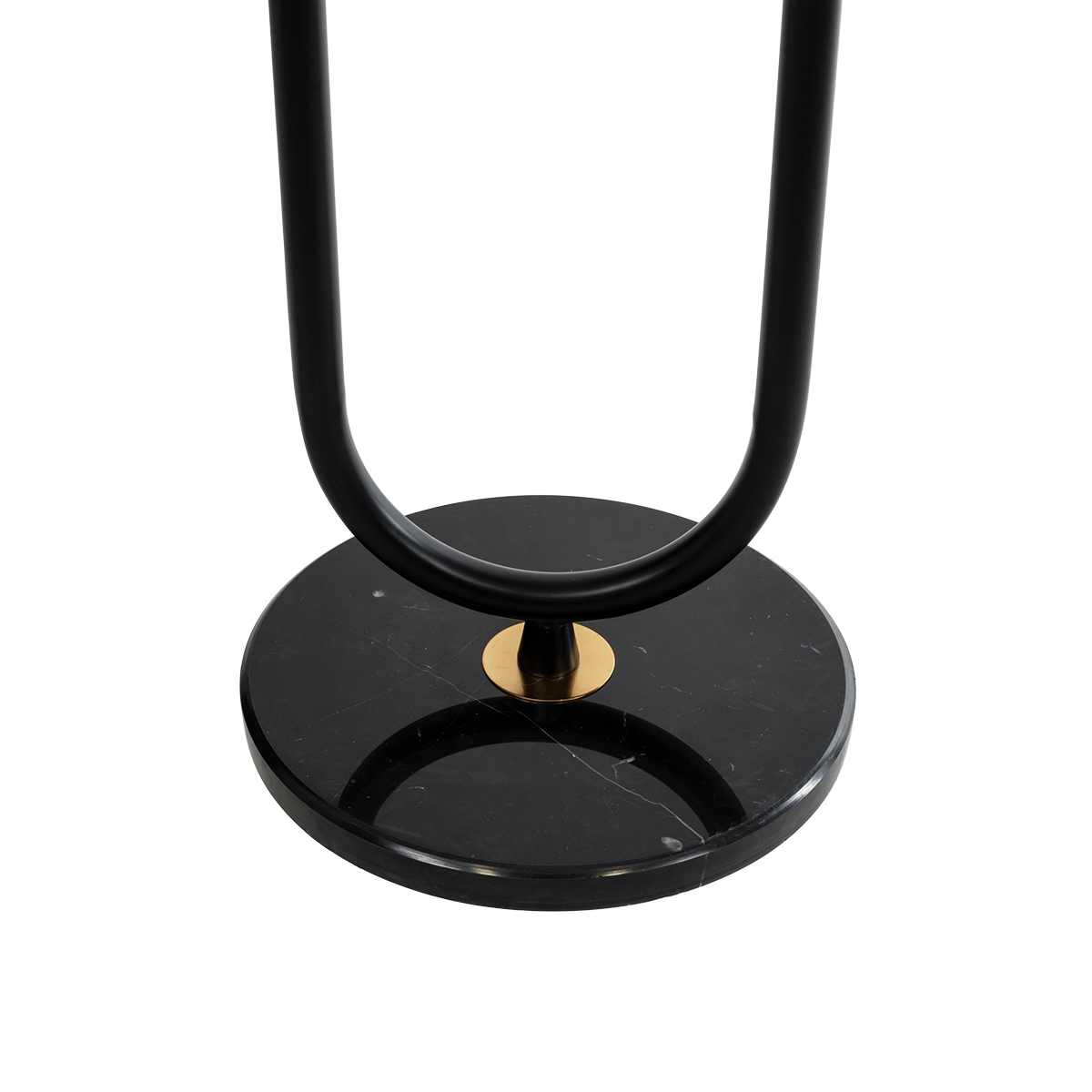 GloboStar® CORDELIA 02024 Μοντέρνο Επιδαπέδιο Φωτιστικό Τραπεζάκι Μονόφωτο 1 x E27 AC220-240V IP20 – Μ30 x Π38 x Υ180cm – Μαύρο με Χρυσό Μεταλλικό & Γυάλινη Γαλακτερή Μπάλα – 5 Χρόνια Εγγύηση