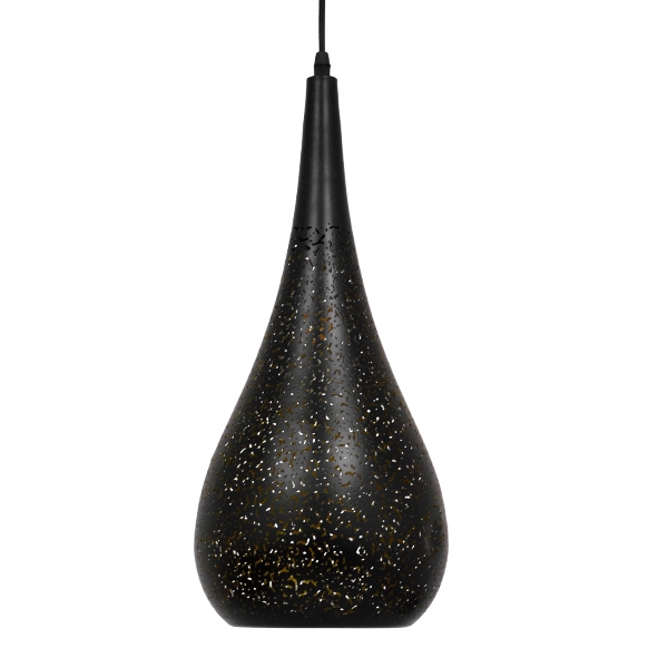 GloboStar® CORONA 01589 Μοντέρνο Κρεμαστό Φωτιστικό Οροφής Μονόφωτο Μαύρο με Χρυσό Μεταλλικό Καμπάνα Φ20 x Υ46cm