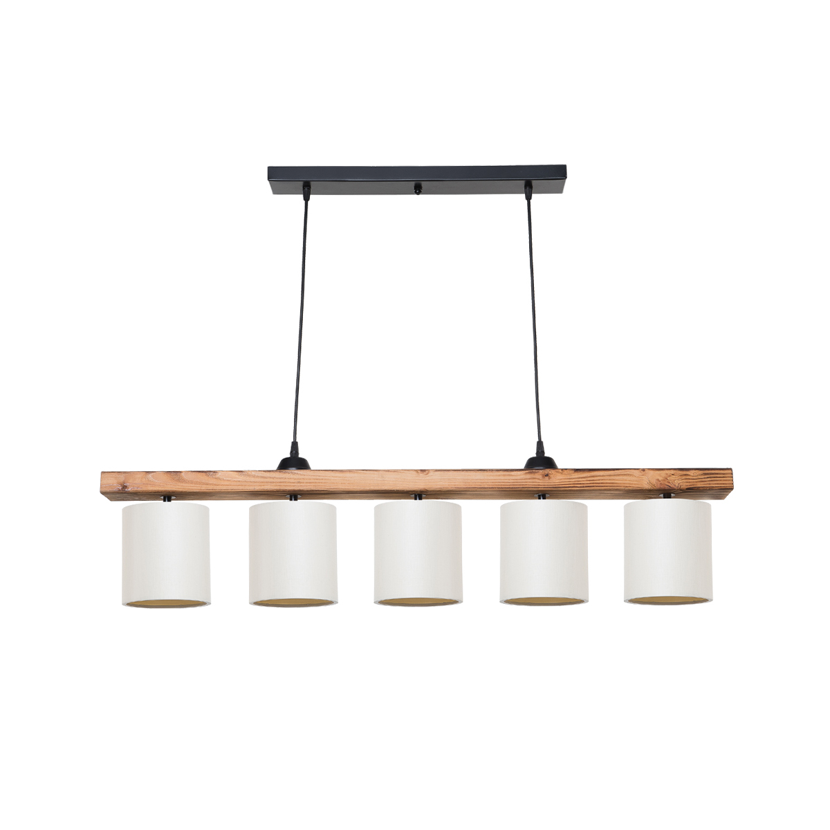 GloboStar® CUP 203-0054 Vintage Κρεμαστό Φωτιστικό Ράγα Πολύφωτο 5 x E27 IP20 Καρυδί Ξύλο Με Λευκό Καπέλο- Μ100 x Π15 x Υ73cm