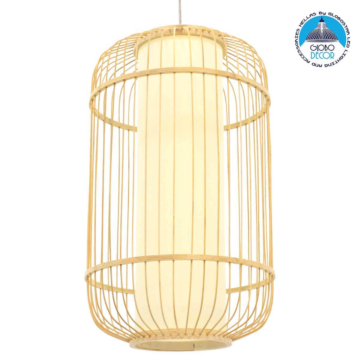 GloboStar® DE PARIS 00894 Vintage Κρεμαστό Φωτιστικό Οροφής Μονόφωτο Καφέ Ξύλινο Bamboo Φ30 x Υ50cm