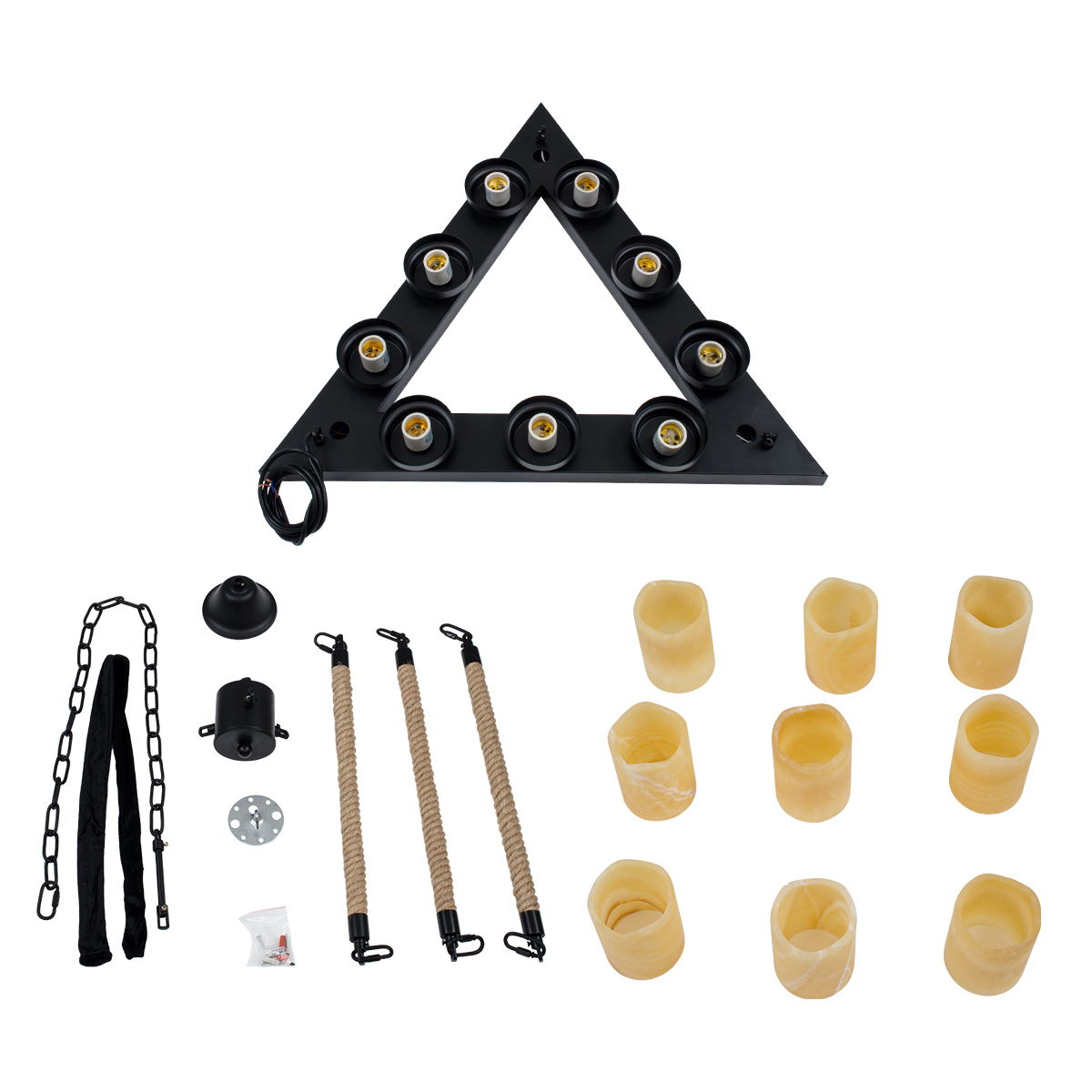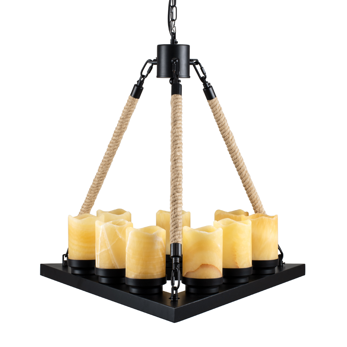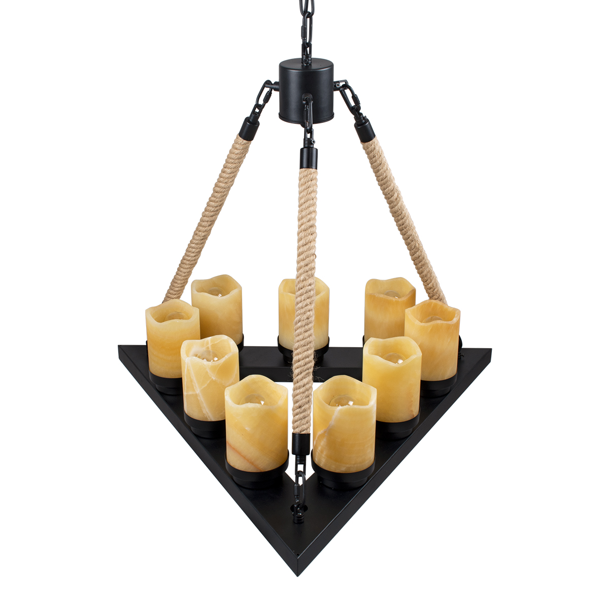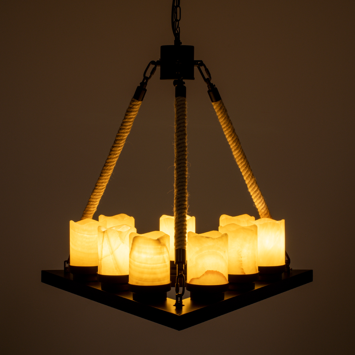 - Τεχνοτροπία Φωτιστικού: Μεταλλικό Πολυέλαιος με Σχοινί
