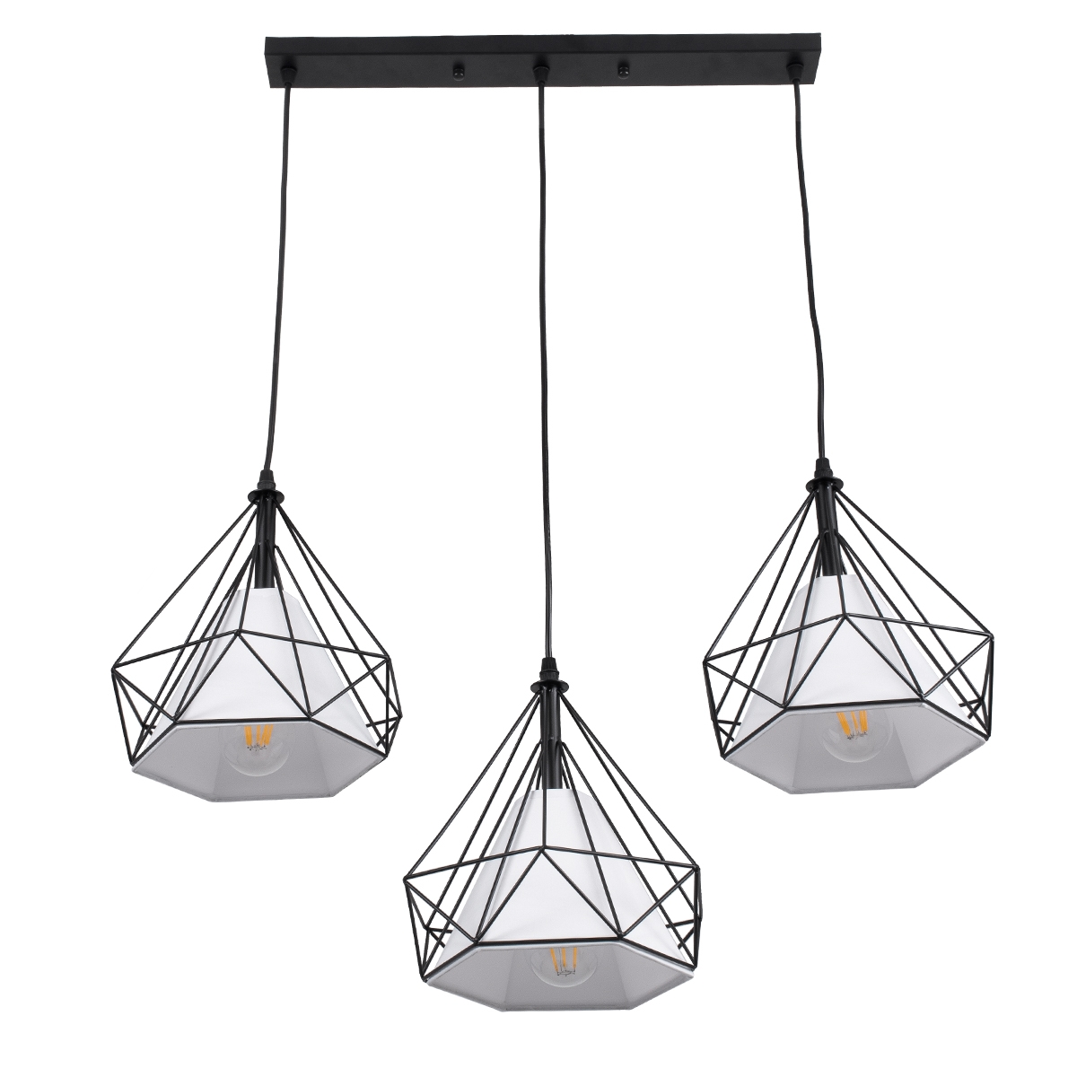 GloboStar® EIFFEL 61569 Vintage Κρεμαστό Φωτιστικό Οροφής Τρίφωτο 3 x E27 Μαύρο Μεταλλικό Πλέγμα με Λευκό Ύφασμα Μ68 x Π25 x Υ130cm