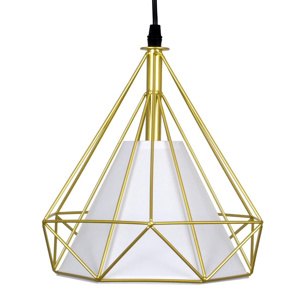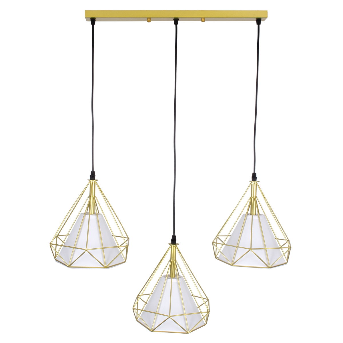 GloboStar® EIFFEL 61571 Vintage Κρεμαστό Φωτιστικό Οροφής Τρίφωτο 3 x E27 Χρυσό Μεταλλικό Πλέγμα με Λευκό Ύφασμα Μ68 x Π25 x Υ130cm