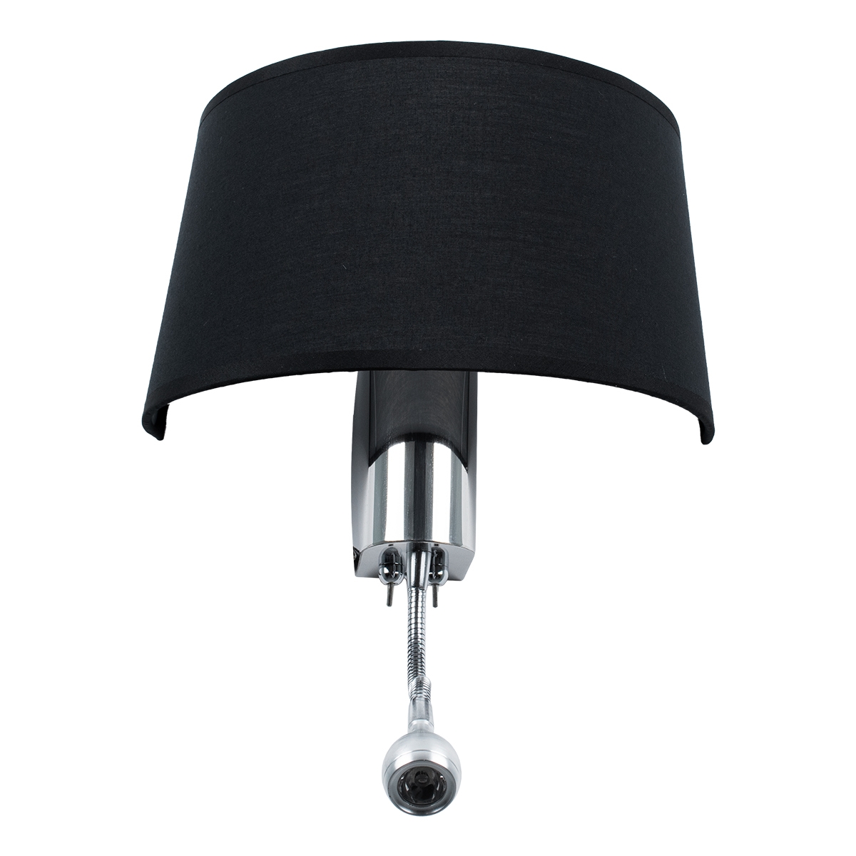 GloboStar® ELEGANT 01492 Μοντέρνο Φωτιστικό Τοίχου Απλίκα Μεταλλικό Χρώμιο Νίκελ με Μαύρο Ύφασμα Δίφωτο 1xE27 – Ρυθμίζόμενο Σώμα Σπιράλ με CREE LED 3W Θερμό Λευκό 2700K – Διακόπτες On / Off Μ26.5 x Π15 x Υ43cm