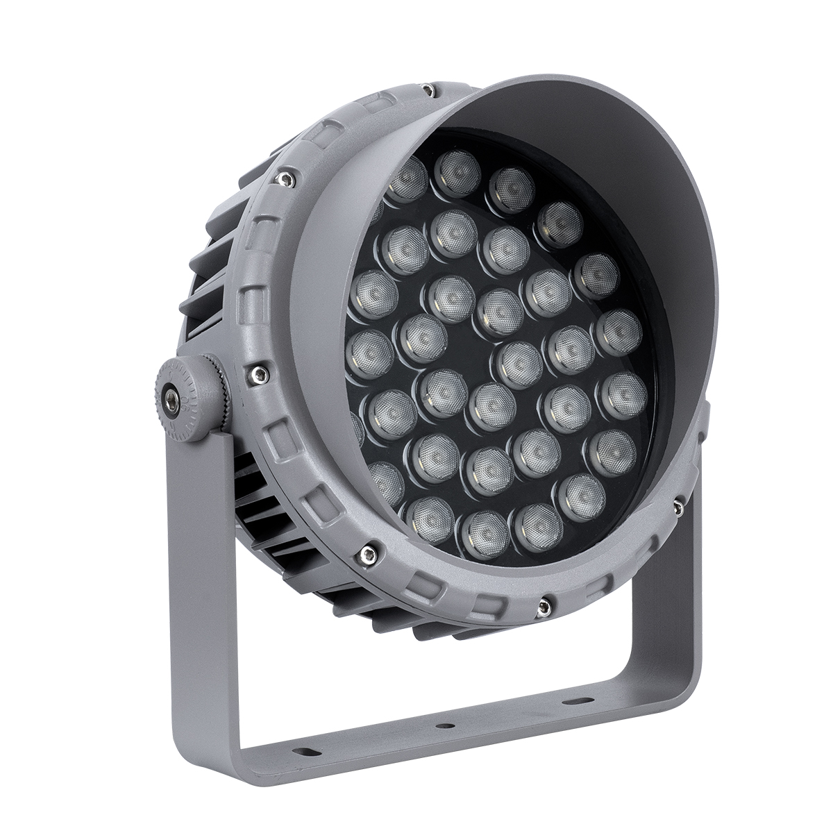 GloboStar® FLOOD-MENA 90645 Προβολέας Wall Washer με Αντιθαμβωτική Γρίλια για Φωτισμό Κτιρίων LED 36W 3240lm 30° AC 220-240V Αδιάβροχο IP65 Φ23 x Υ18cm Θερμό Λευκό 3000K – Ασημί – 3 Years Warranty