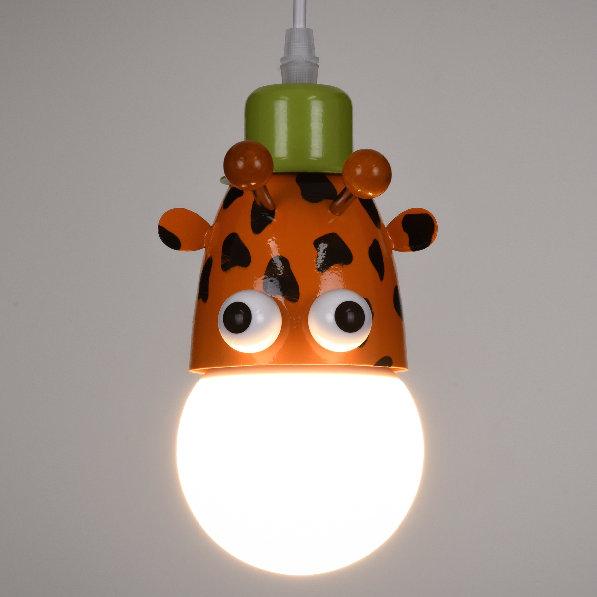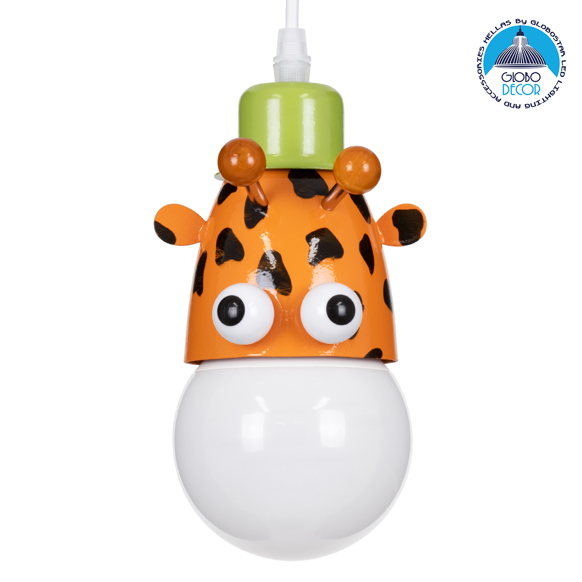 GloboStar® GIRAFFE 00638 Μοντέρνο Κρεμαστό Παιδικό Φωτιστικό Οροφής Μονόφωτο 1 x E27 Λευκό Πράσινο Πορτοκαλί Μαύρο Μεταλλικό Μ12 x Π10.5 x Υ13.5cm