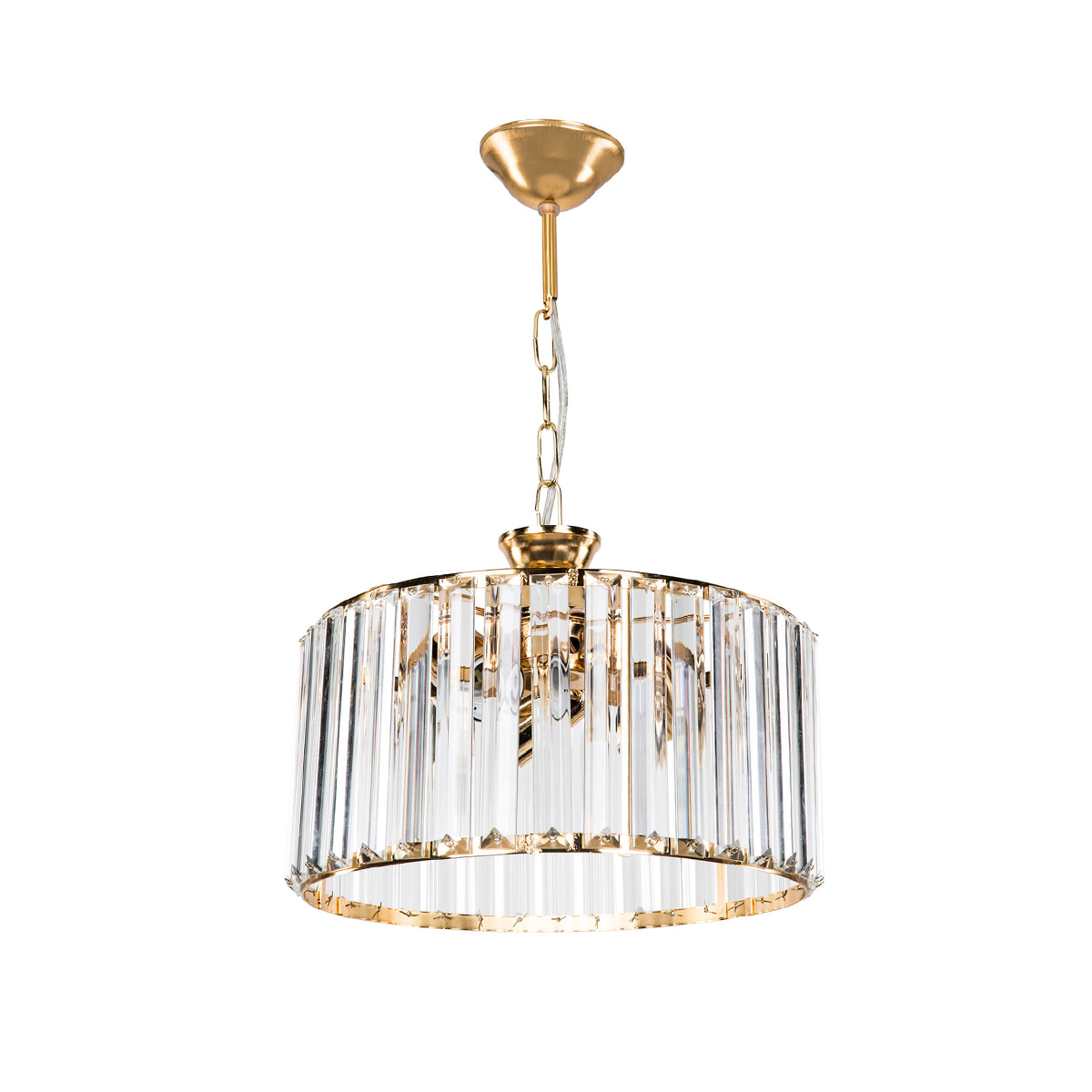 GloboStar® GLAMOROUS 203-0094 Κρύσταλλο Κρεμαστό Φωτιστικό Κρύσταλλα Τρίφωτο 3 x E27 IP20 Χρυσό Μεταλλό με Κρύσταλλο – Μ30 x Π30 x Υ45cm