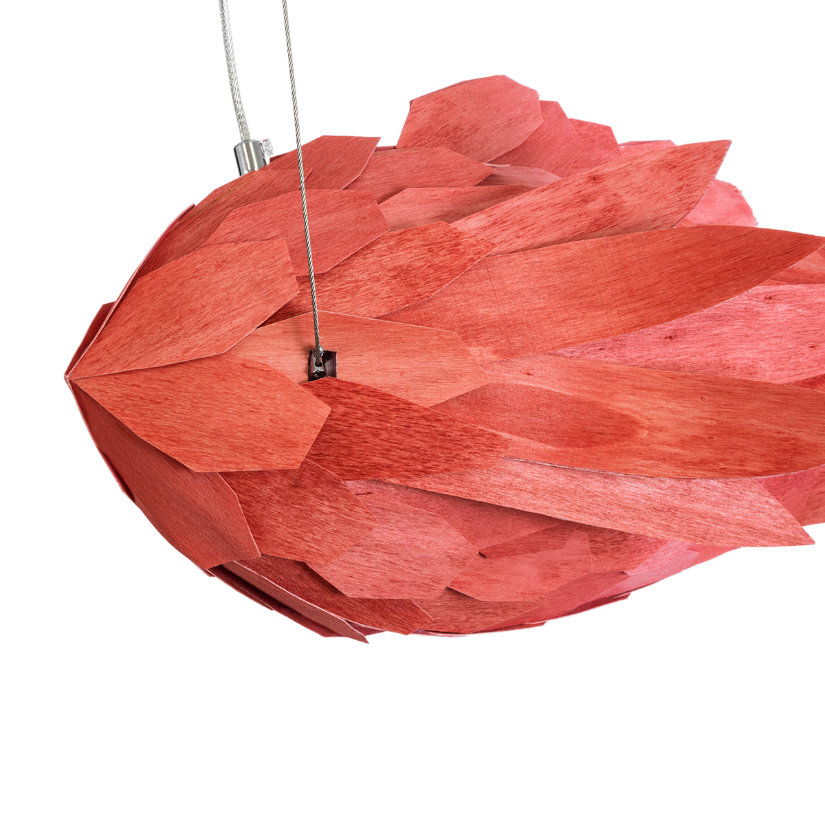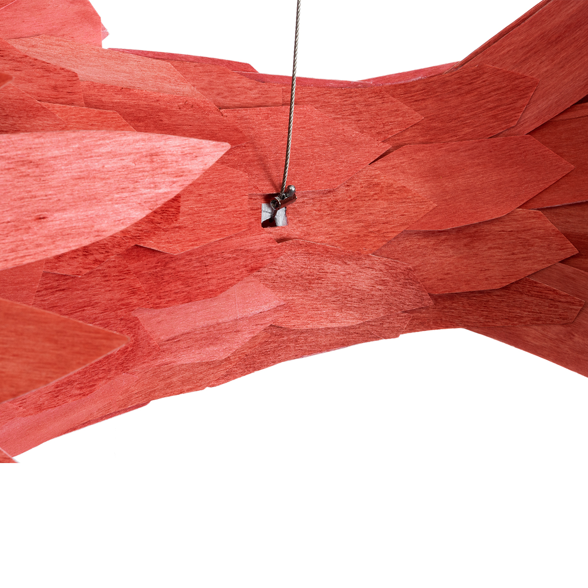 GloboStar® GOURAMI 02360 Boho Κρεμαστό Φωτιστικό Οροφής Μονόφωτο 1 x E27 AC220-240V IP20 – Μ70 x Π40 x Υ27cm – Κόκκινο Λεπτό Φύλλο Ξύλου Πλέγμα