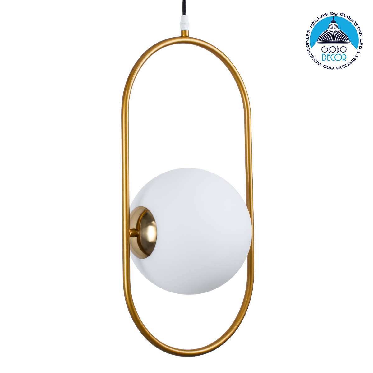 GloboStar® HAMBURG 00592 Μοντέρνο Κρεμαστό Φωτιστικό Οροφής Μονόφωτο 1 x G9 Χρυσό Μεταλλικό Γυάλινο Μπάλα Μ25 x Π20 x Υ50cm
