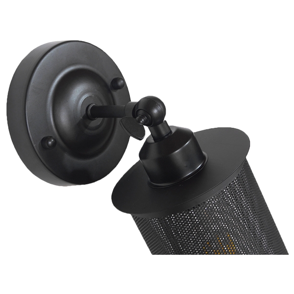 GloboStar® HOLVIA 01160 Vintage Industrial Φωτιστικό Τοίχου Απλίκα Μονόφωτο Μαύρο Μεταλλικό Πλέγμα Φ10 x Μ16 x Π12 x Υ34cm