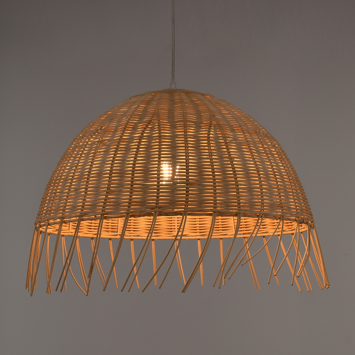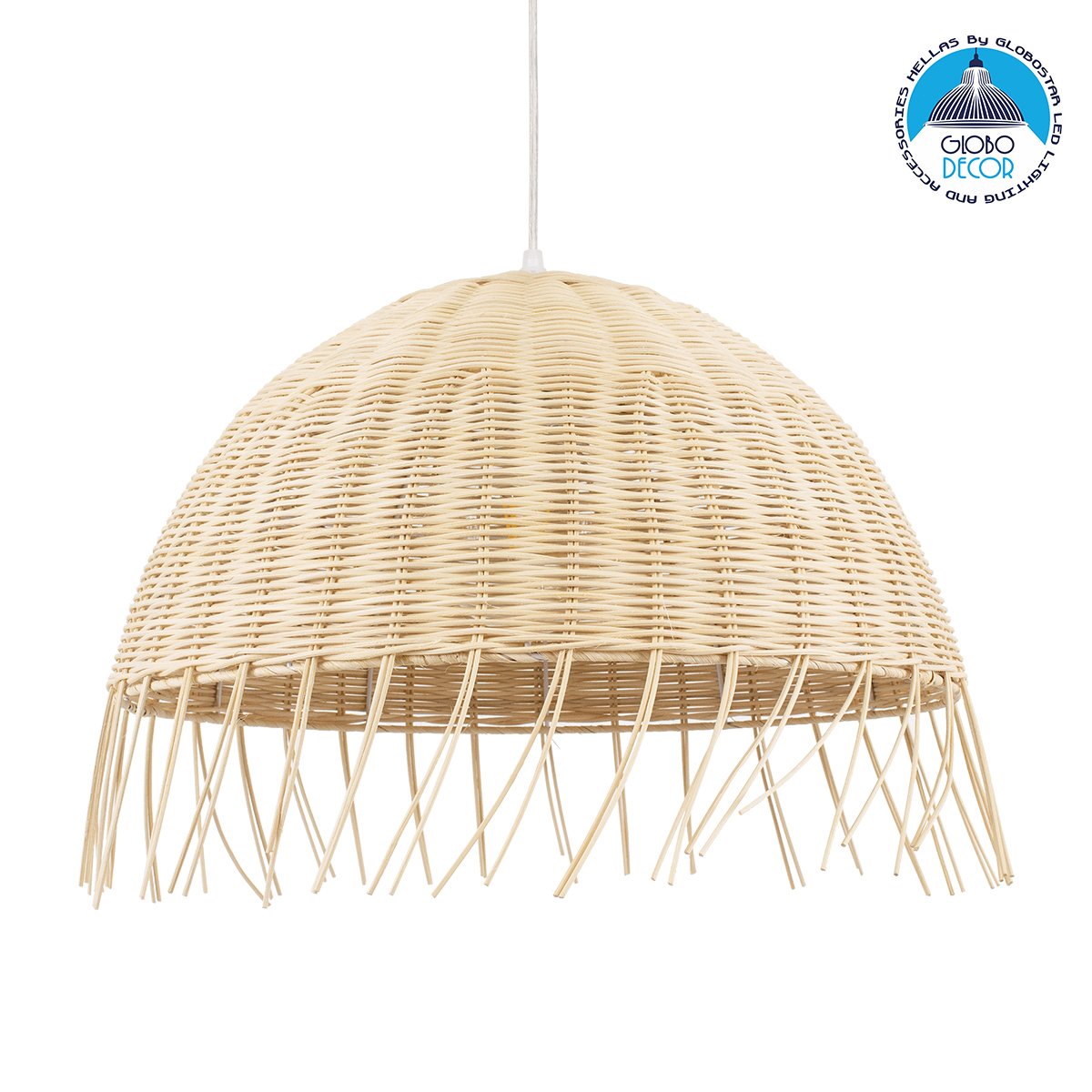 GloboStar® JAKARTA 00712 Vintage Κρεμαστό Φωτιστικό Οροφής Μονόφωτο 1 x E27 Μπέζ Ξύλινο Ψάθινο Μπαμπού Καμπάνα Φ50 x Y36cm