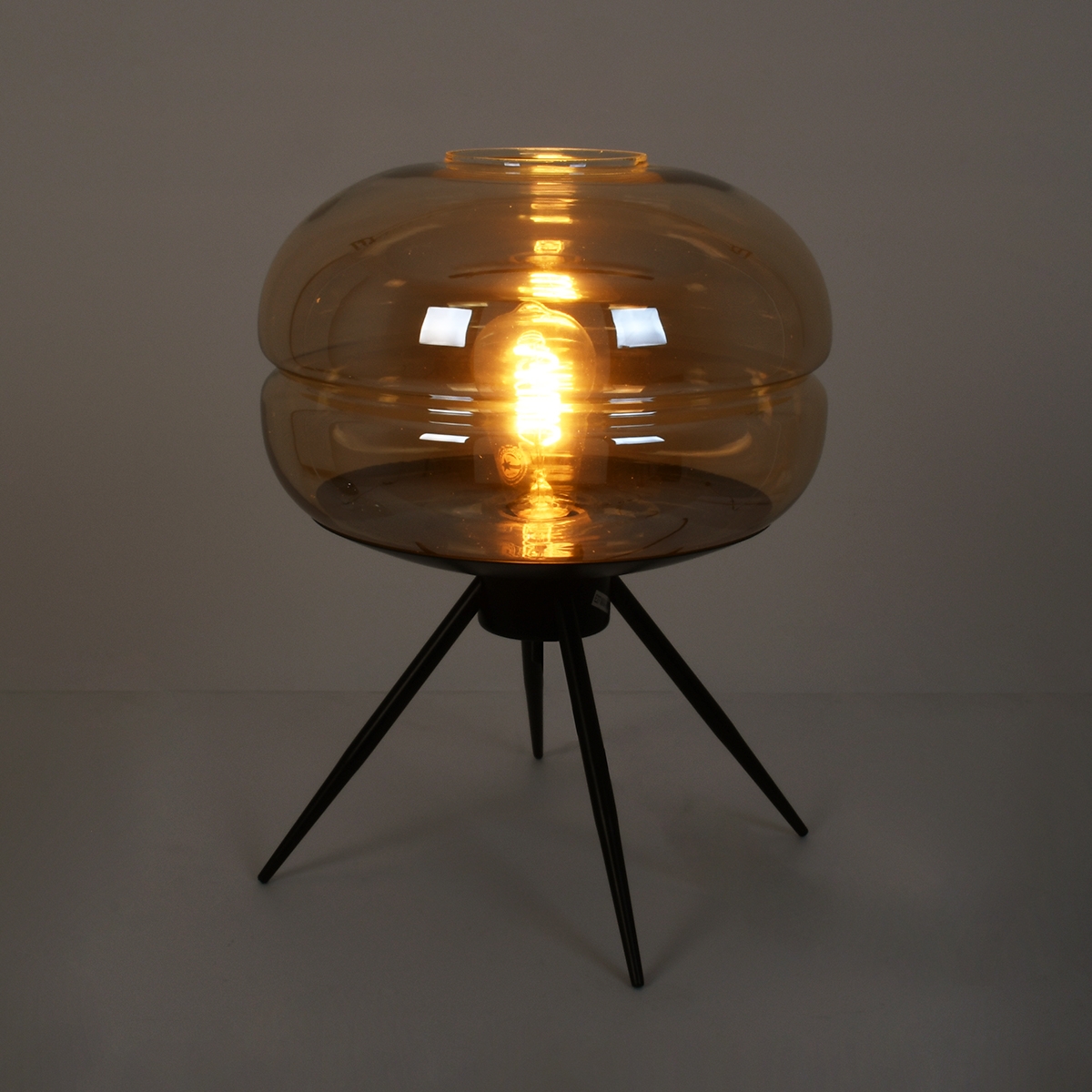 GloboStar® JAVAN 00737 Μοντέρνο Επιτραπέζιο Φωτιστικό Πορτατίφ Λαμπατέρ Μονόφωτο Μελί Γυάλινο Μαύρο Μεταλλικό Φ30 x Υ19cm