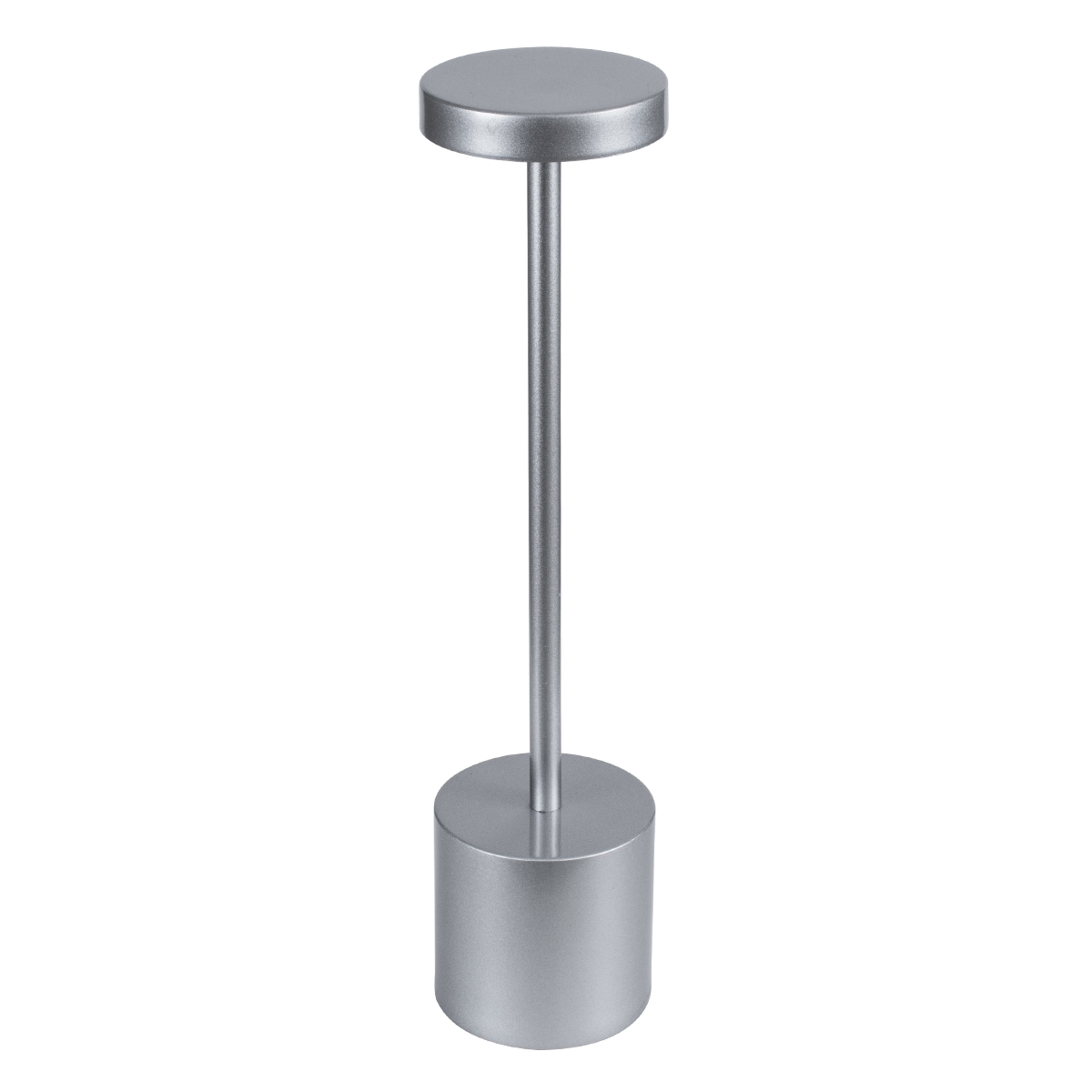 GloboStar® JOJO 76521 Μοντέρνο Επιτραπέζιο Φωτιστικό Πορτατίφ LED 1.5W 105lm 120° DC 5V Επαναφορτιζόμενο με Μπαταρία Li-ion 1800mAh – Διακόπτη Αφής με 3 Εναλλαγές Φωτισμού CCT Θερμό – Φυσικό – Ψυχρό 1500K – 4500K – 6000K Dimmable – D8 x H34cm – Ασημί