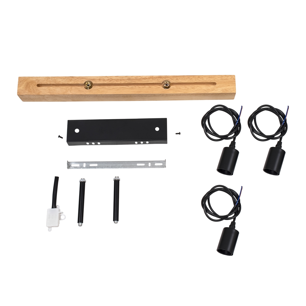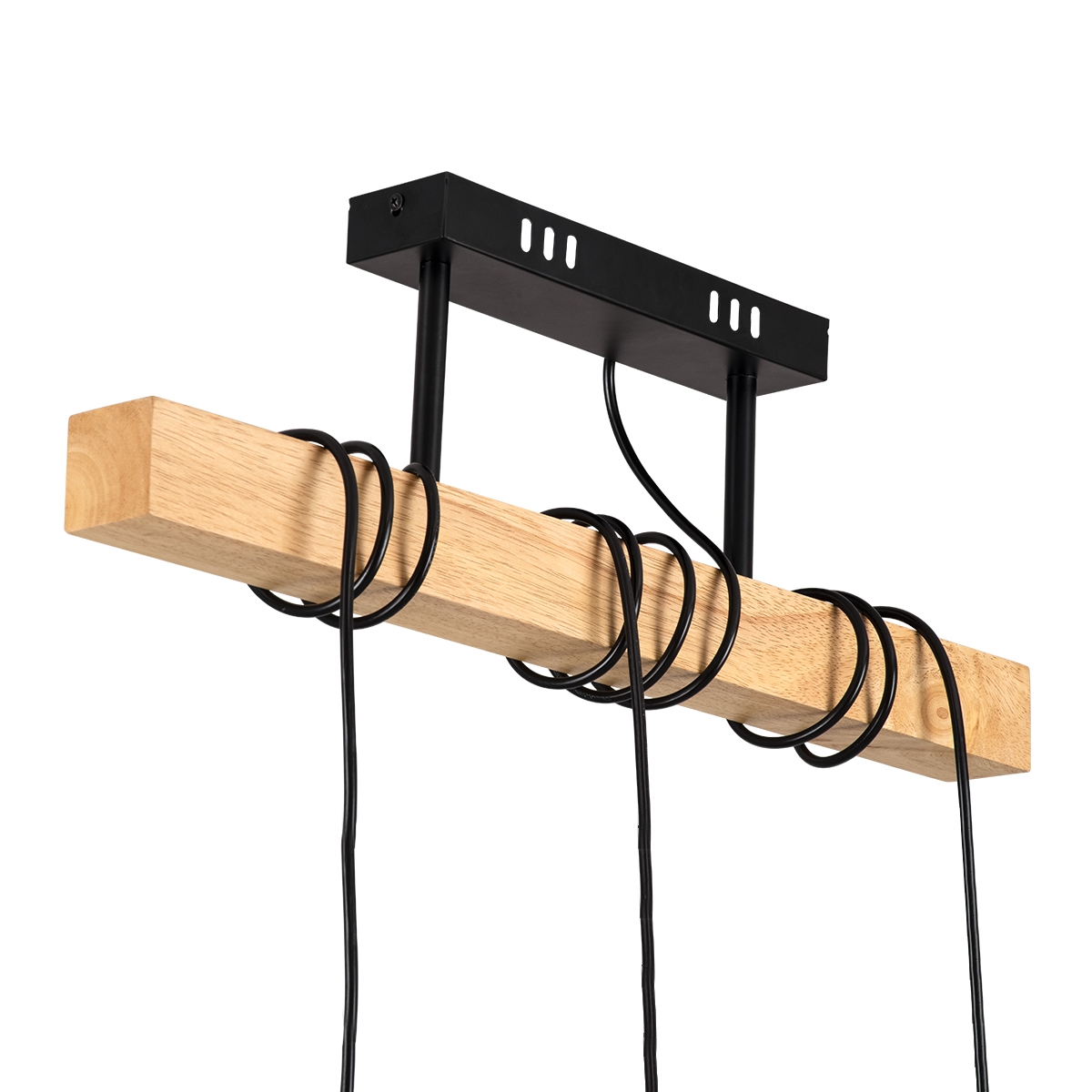 GloboStar® JOLLY 00605 Vintage Κρεμαστό Φωτιστικό Οροφής Τρίφωτο 3 x E27 Μαύρο Μεταλλικό Ξύλινο Ράγα Μ55 x Π6 x Υ30cm έως Y115cm max