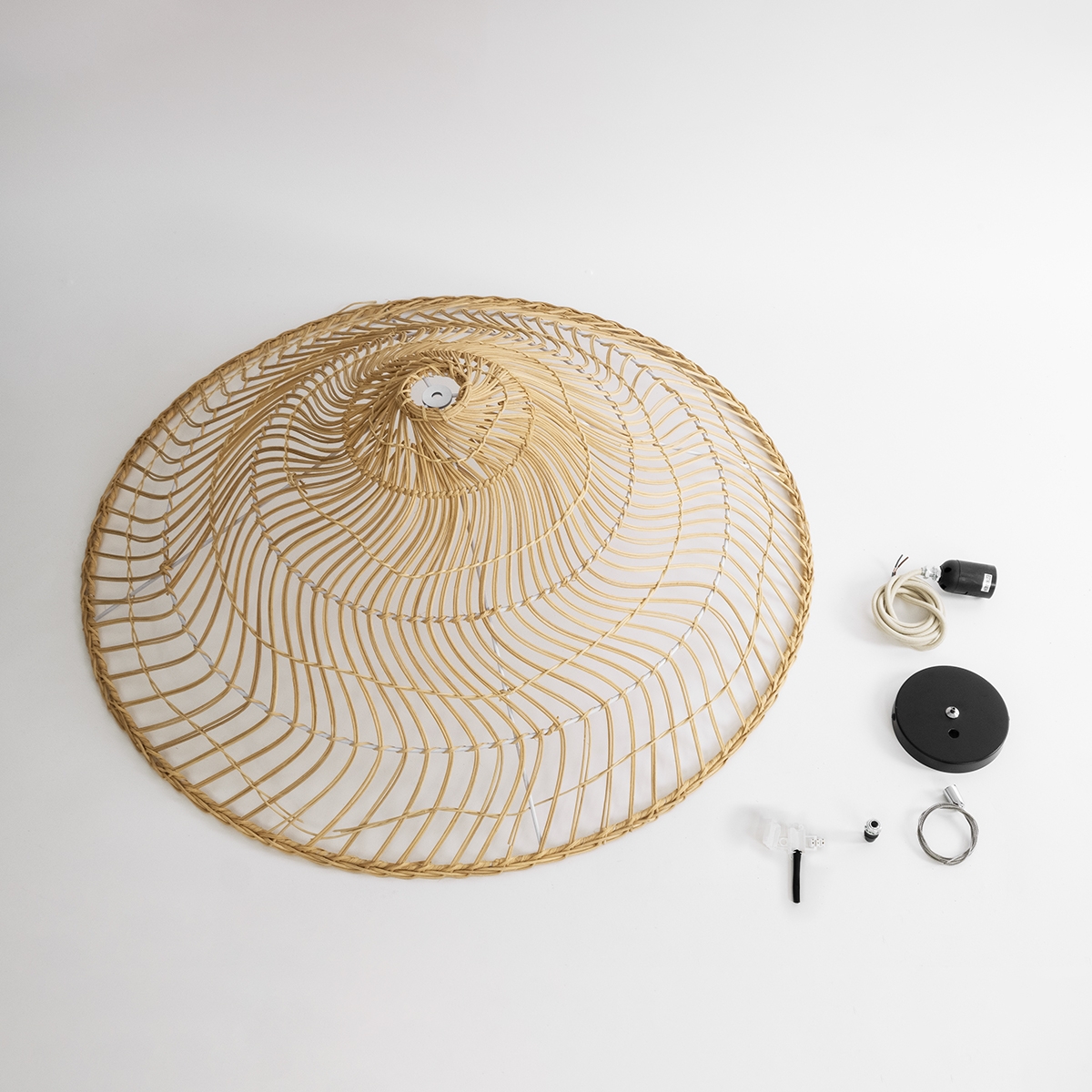 GloboStar® KAIA 02347 Boho Κρεμαστό Φωτιστικό Οροφής Μονόφωτο 1 x E27 AC220-240V IP20 – Φ80 x Υ26cm – Μπεζ Ξύλινο Μπαμπού Πλέγμα Καμπάνα – 5 Χρόνια Εγγύηση