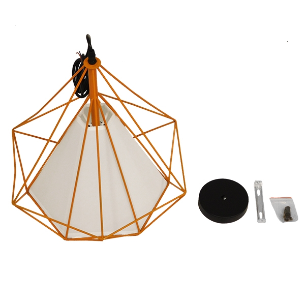 GloboStar® KAIRI 01621 Μοντέρνο Industrial Κρεμαστό Φωτιστικό Οροφής Μονόφωτο Πορτοκαλί με Άσπρο Ύφασμα Μεταλλικό Πλέγμα Φ38 x Υ39cm